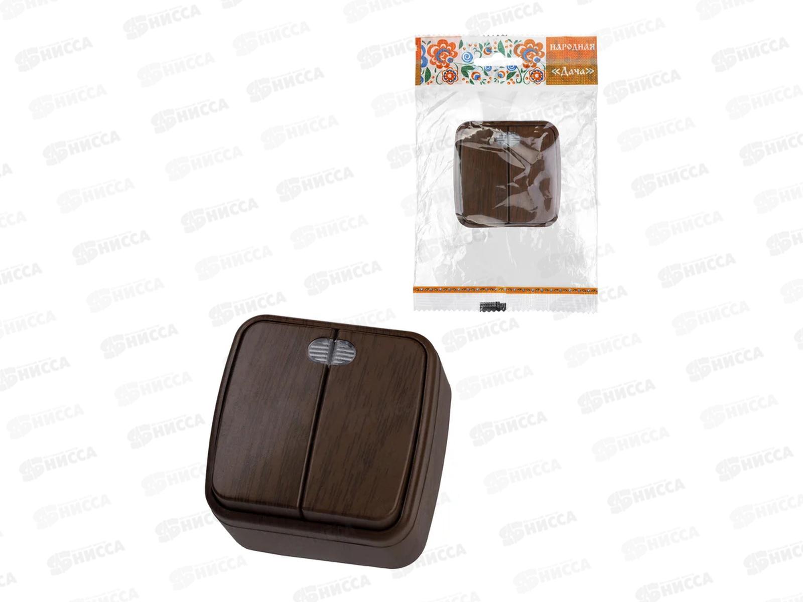 Выключатель 2-клавиши открытой установки с подсветкой IP20 10А, венге "Дача" Народная, 0044 *10/100