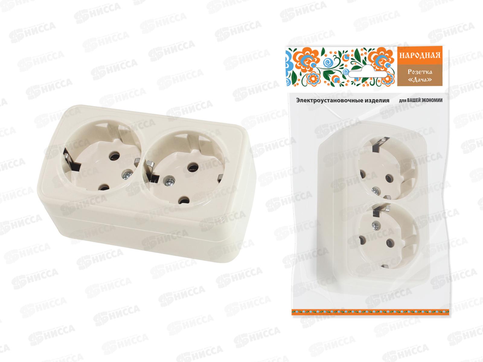 Розетка двойная 2П+3 открытой установки IP20 16А, сл. кость "Дача" Народная, 0023 *8/180