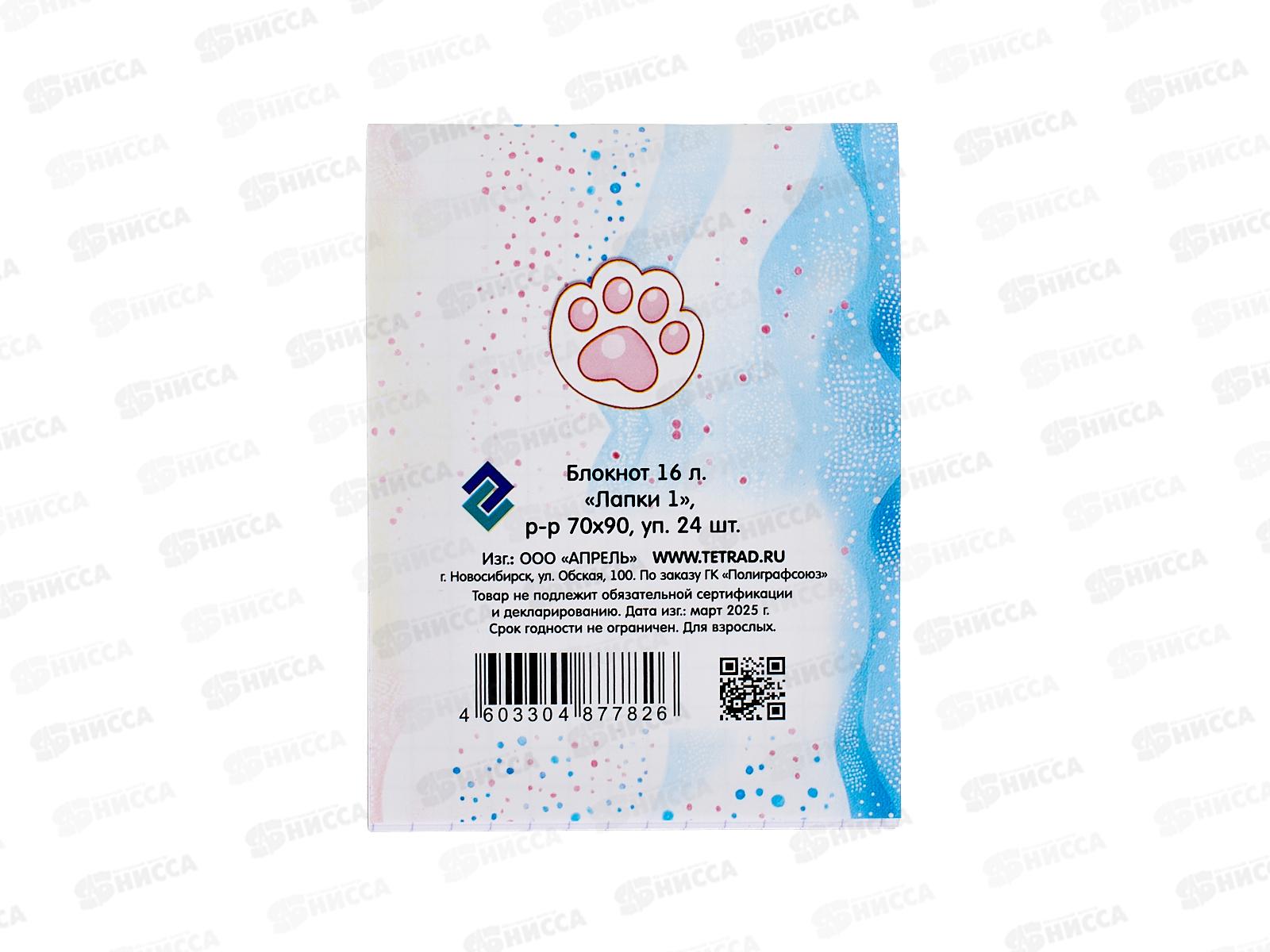 Блокнот 16л ПГС Лапки 1, А7 *24