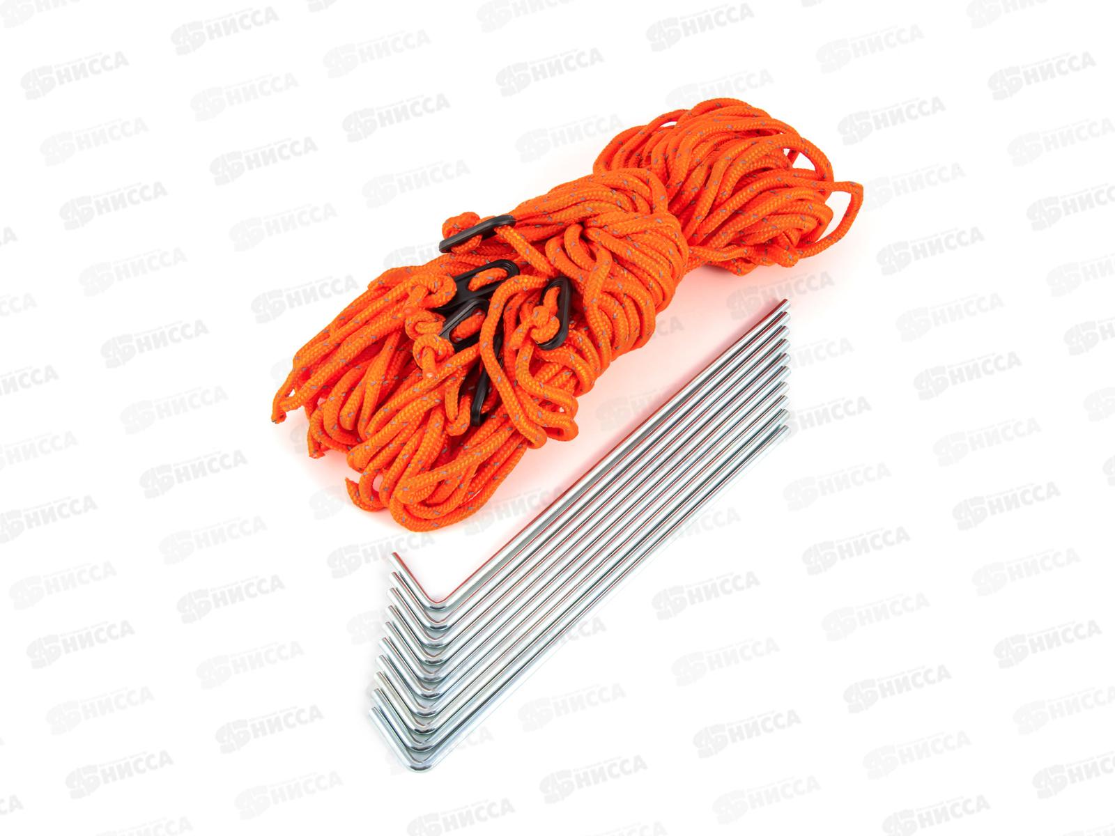 Комплектация: тент - 1 шт, стойка - 2 шт, колышки - 10 шт, оттяжки - 8 шт.