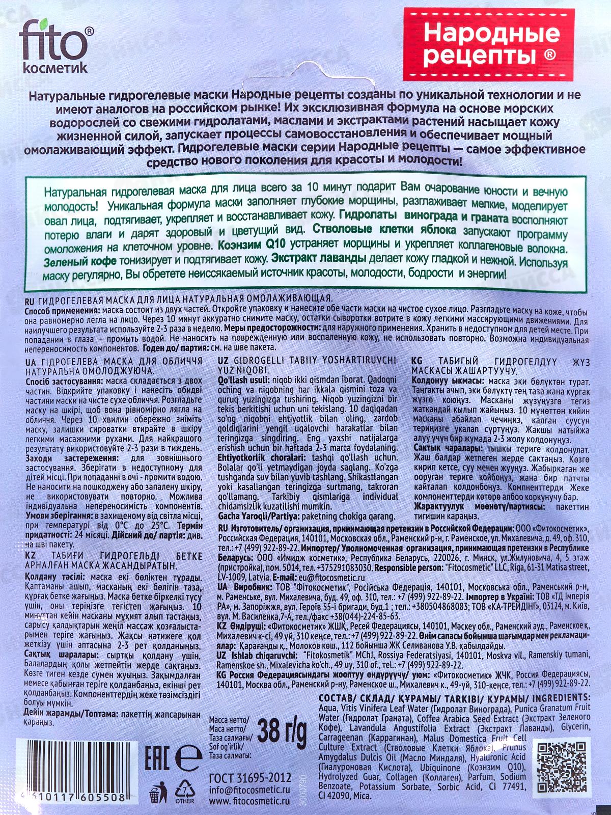 НР маска д/лица гидрогелевая Омолаживающая *15