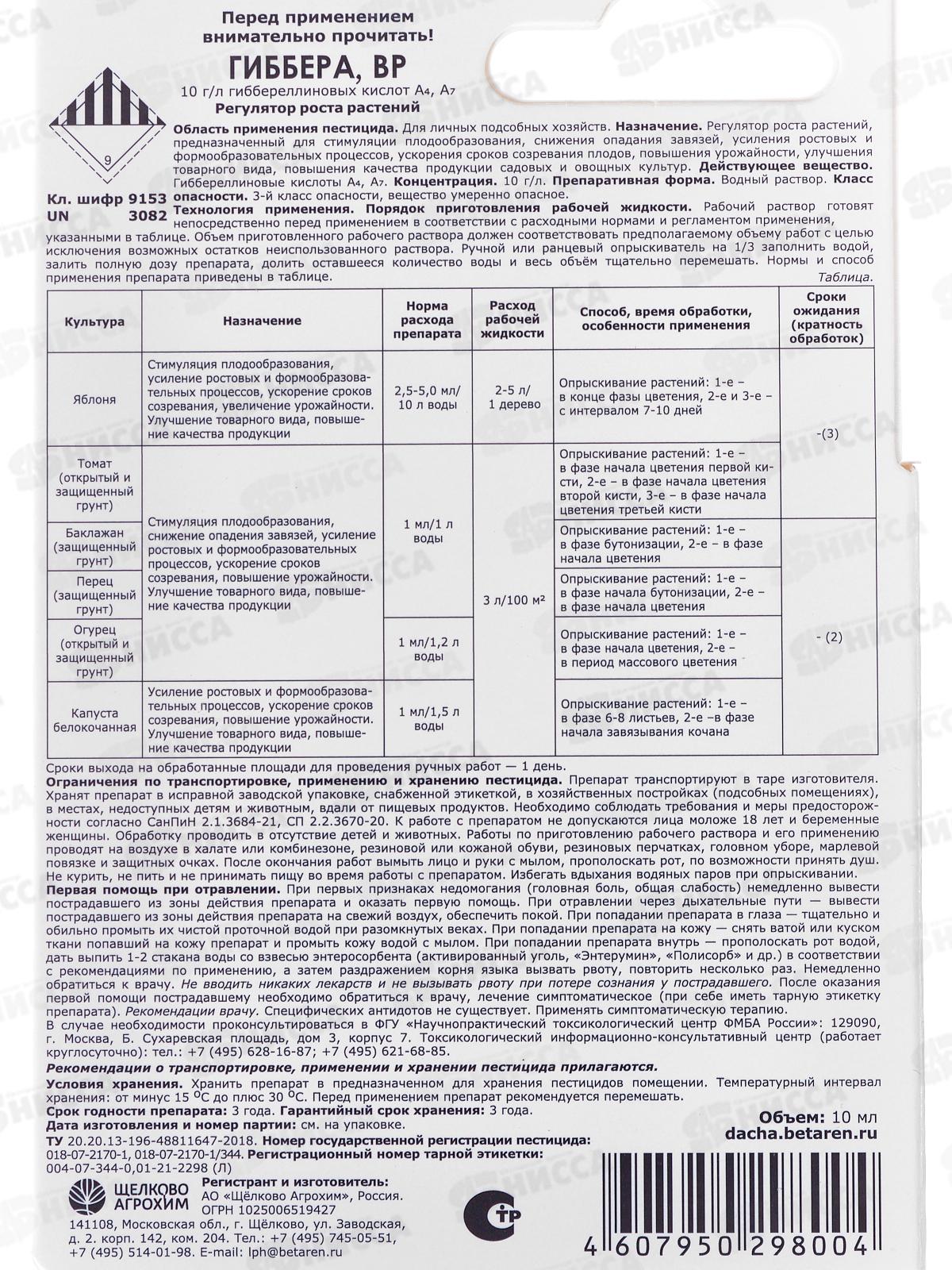 Гиббера стимулятор цветения, образования завязи и роста плодов ВР 10мл