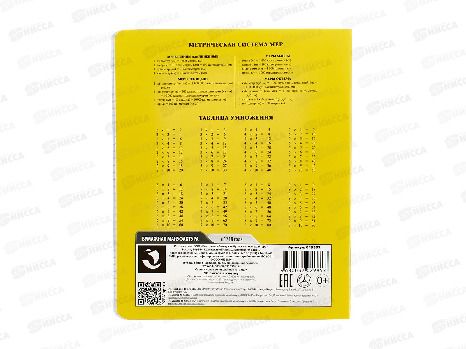 Тетрадь 18л кл. ПЗБМ Новая великолпная тетрадь,желтая,019857*10/200