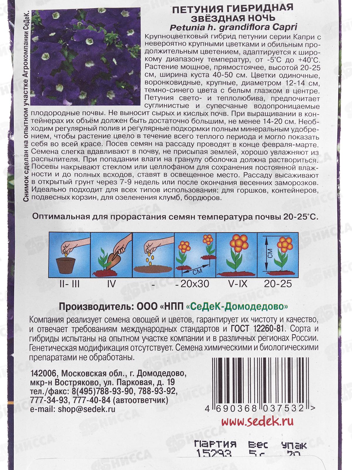 Петуния Звездная ночь F1 (крупноцветковая, темно-синяя с белым центром) (Евро,5) СеДек *10 +