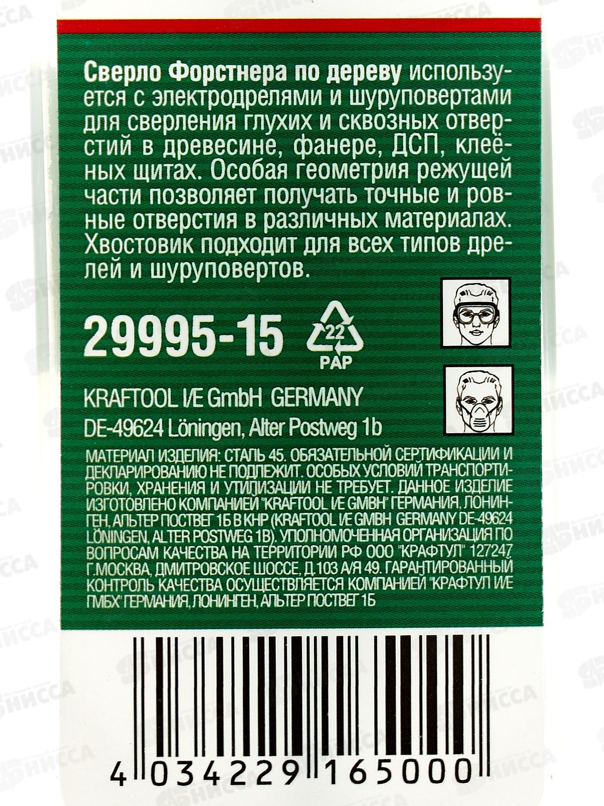 Сверло форстнера по дереву Uragan 15мм 29995-15