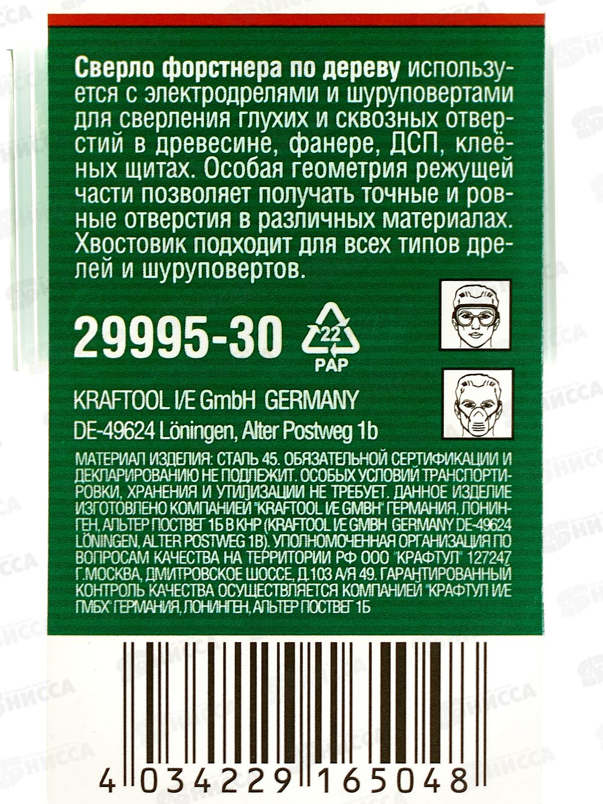 Сверло форстнера по дереву Uragan 30мм 29995-30
