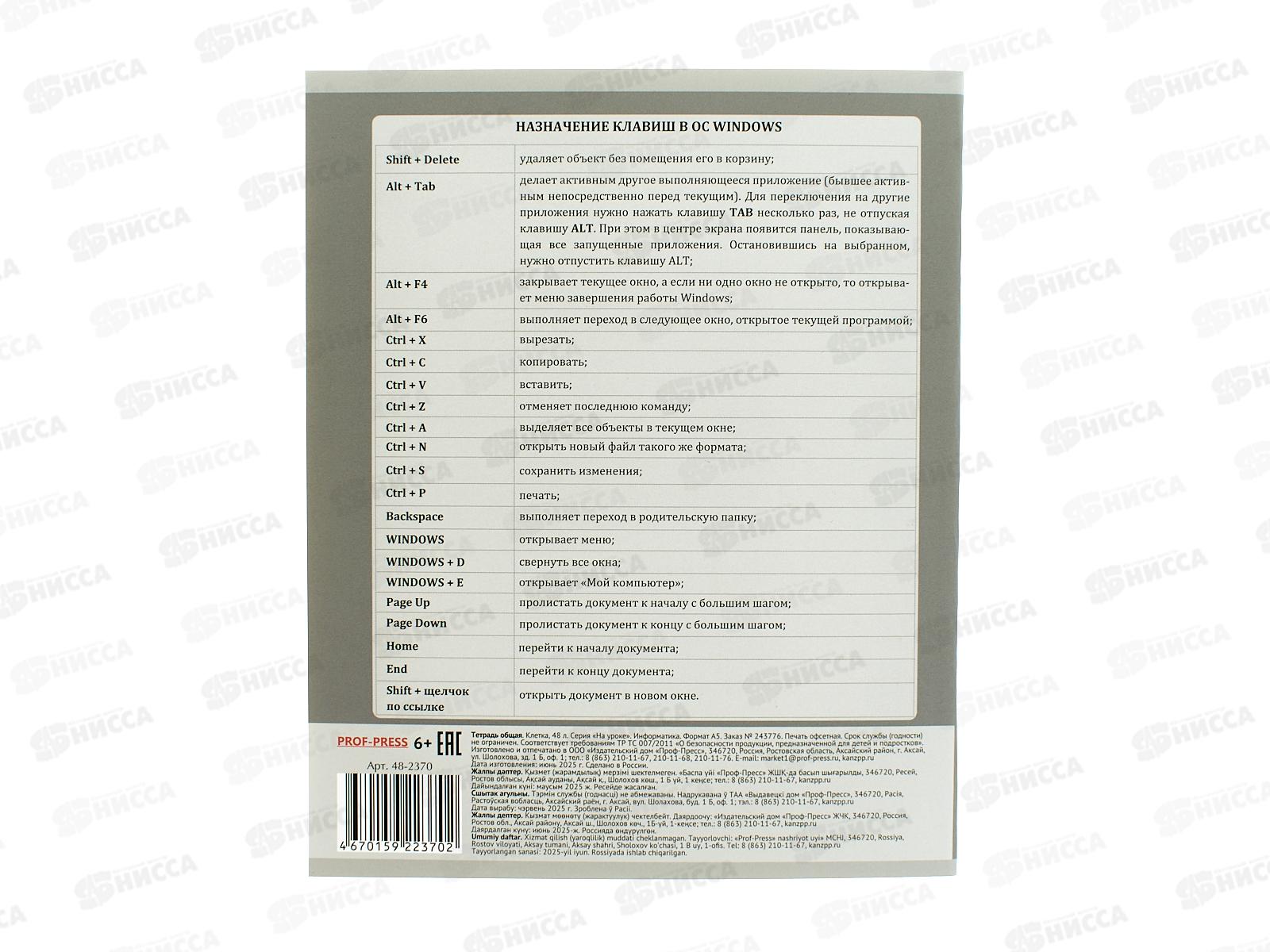 Тетрадь 48л клетка ПП "На уроке" Информатика, 48-2370 софт-тач *80