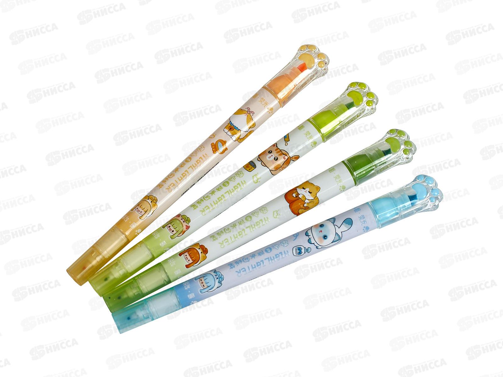 Набор маркеров-текстовыделителей 2-х сторон. 4цв Котики и лапки 12037