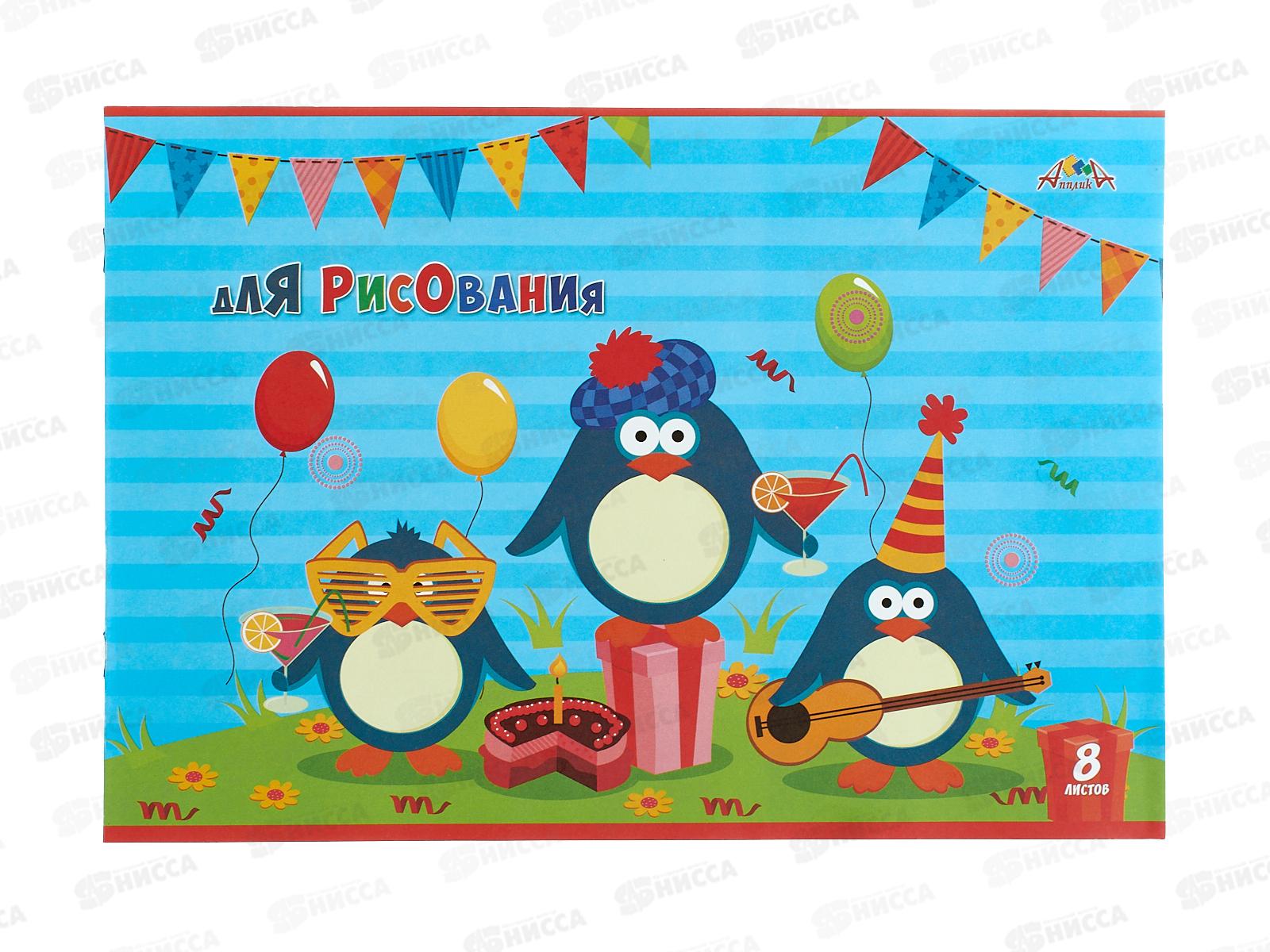 Тетрадь для рисования 8 листов. Формат А4. Тетрадь изготовлена из высококачественной, белой, офсетной бумаги. Обложка выполнена из офсетной бумаги с поноцветной печатью.Блок и обложка скреплены металлическими скобами. Тетрадь предназначена для рисования карандашами.