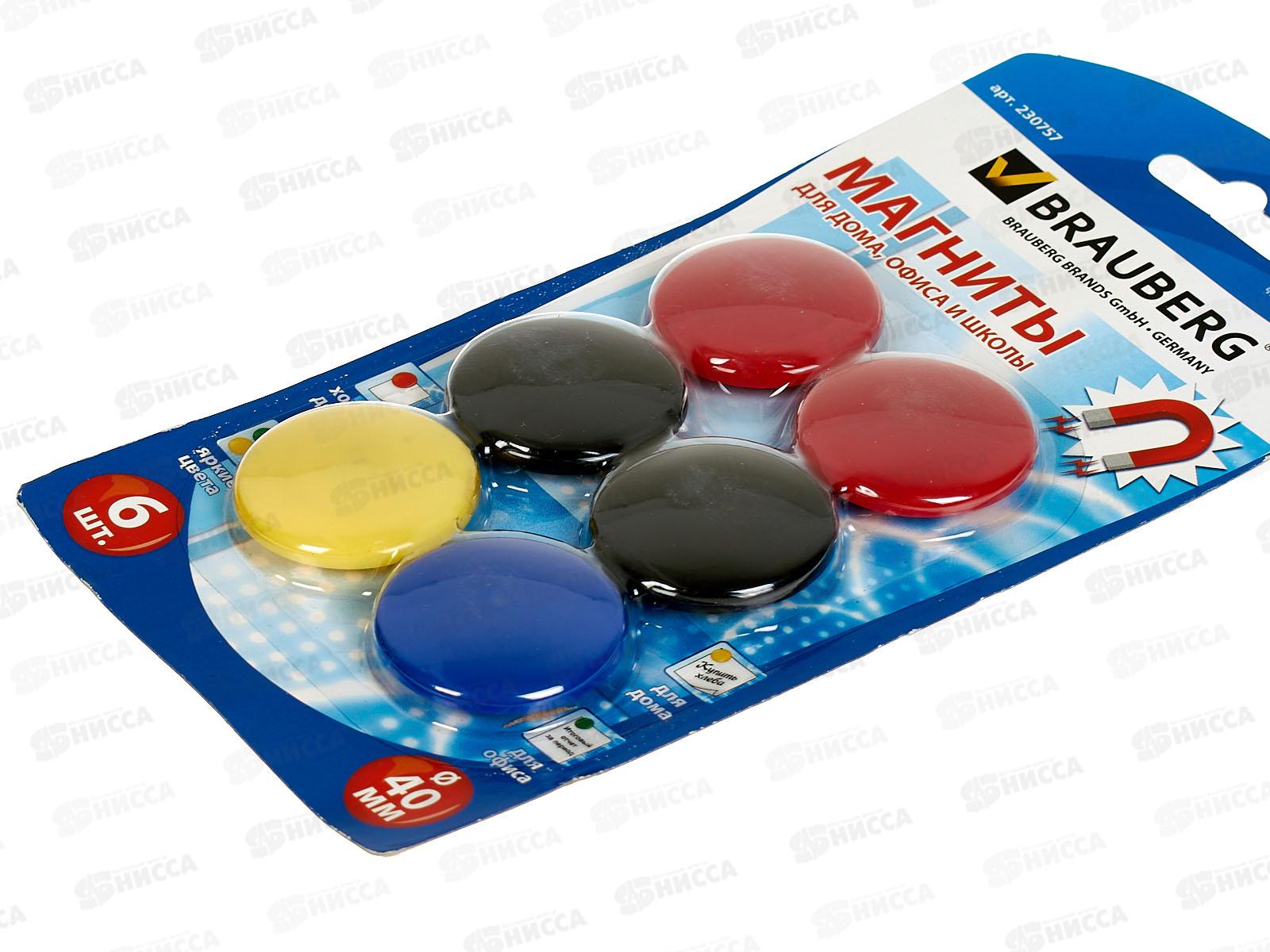 Магниты BRAUBERG 40мм 6шт, асс, 230757 *24