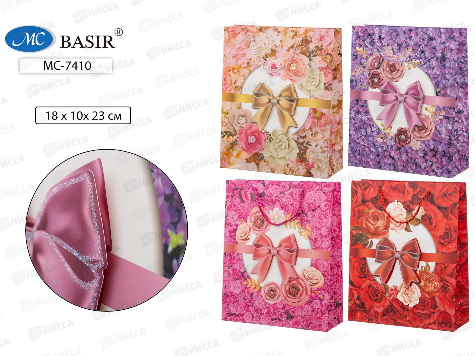 Пакет подароч. бумажный, 18*10*23см, Цветы бант, асс. МС-7410 *20