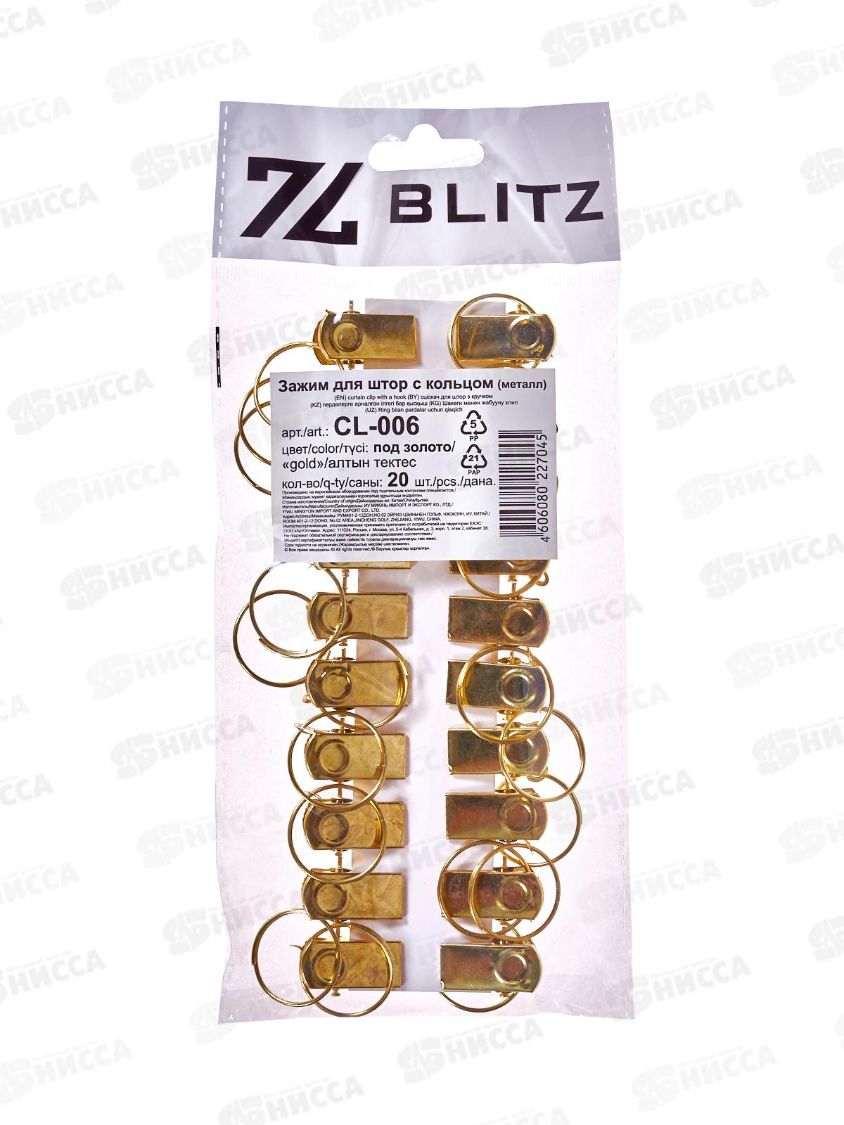 Зажим для штор металл с кольцом CL-006 (20шт) под золото
