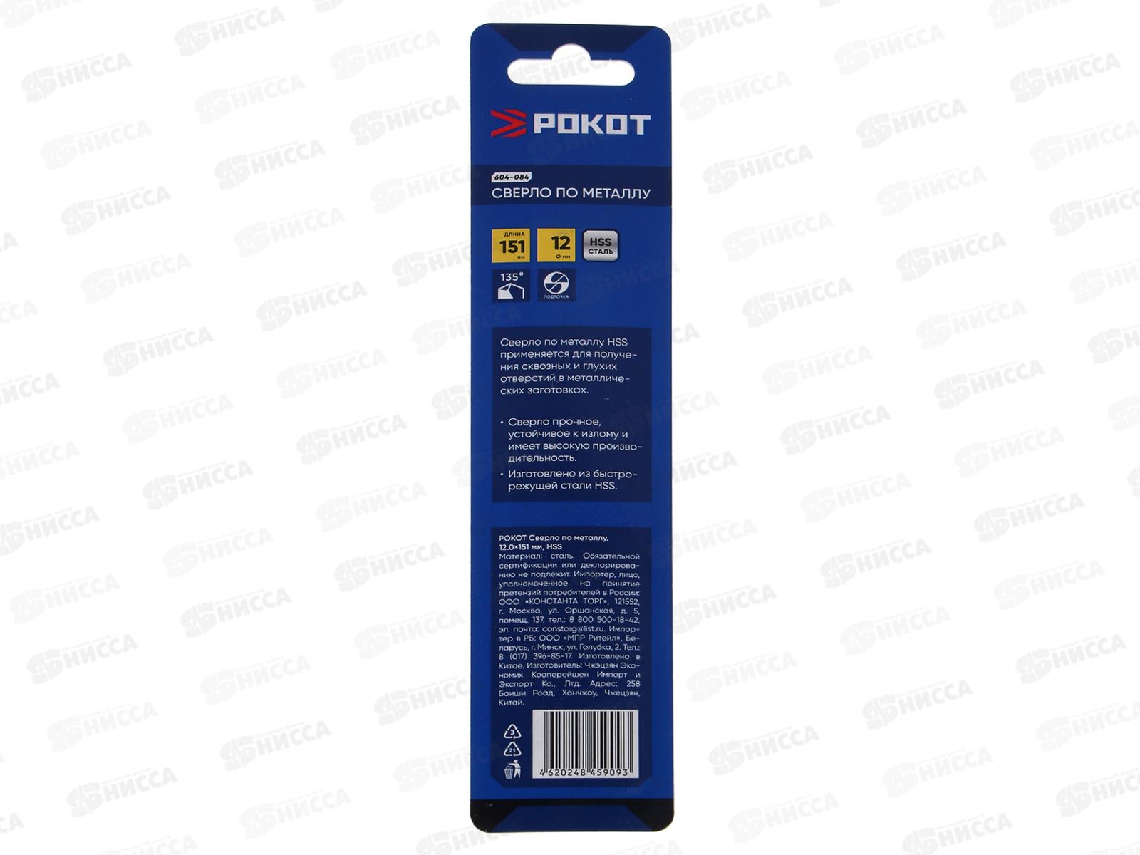 Сверло по металлу 12*151мм РОКОТ 604-084 г