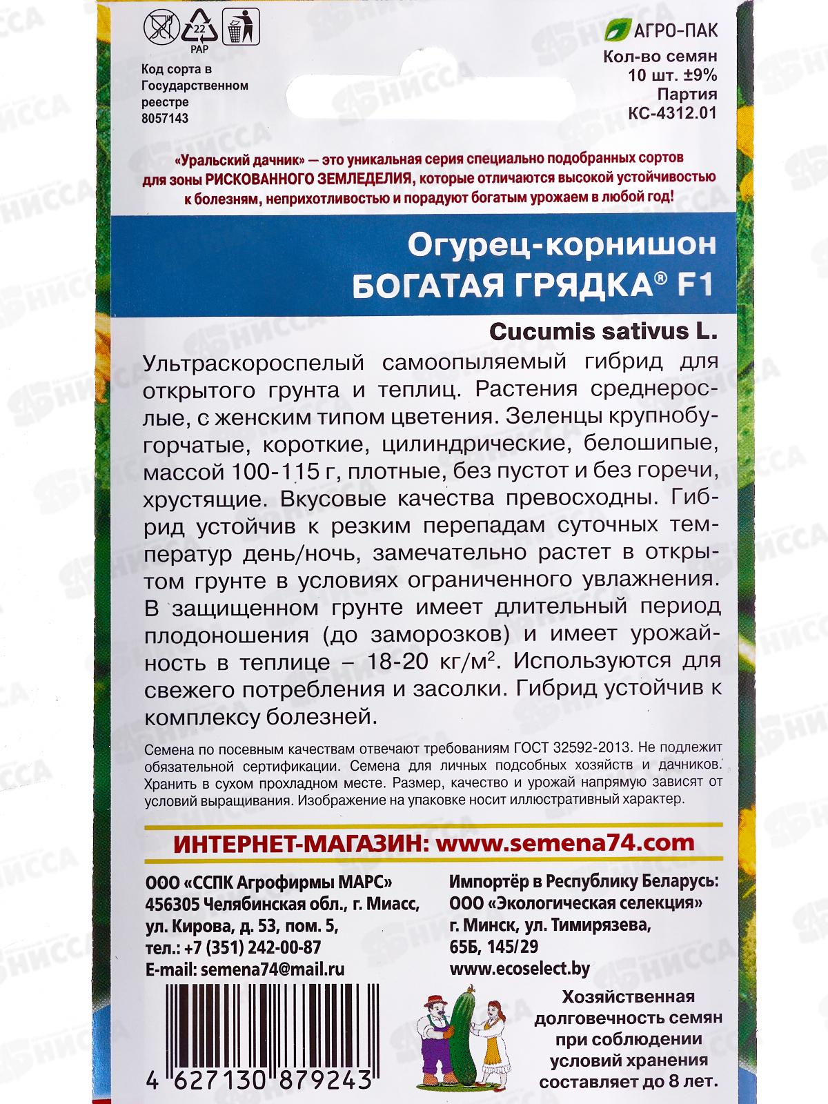 Огурец Богатая Грядка F1 Евро *10 УрД +