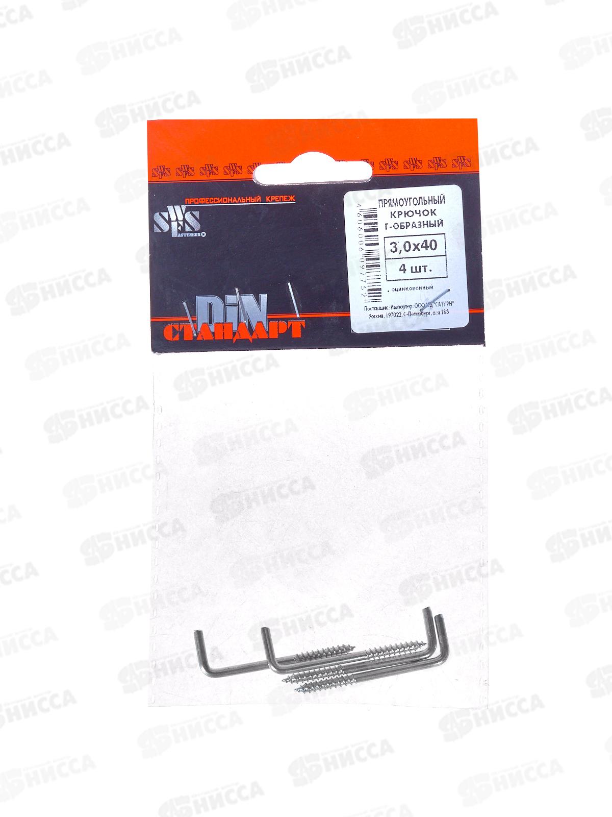 Крючок прямоугольный Г-образный 3.0*40 4шт пакетик (костыль)