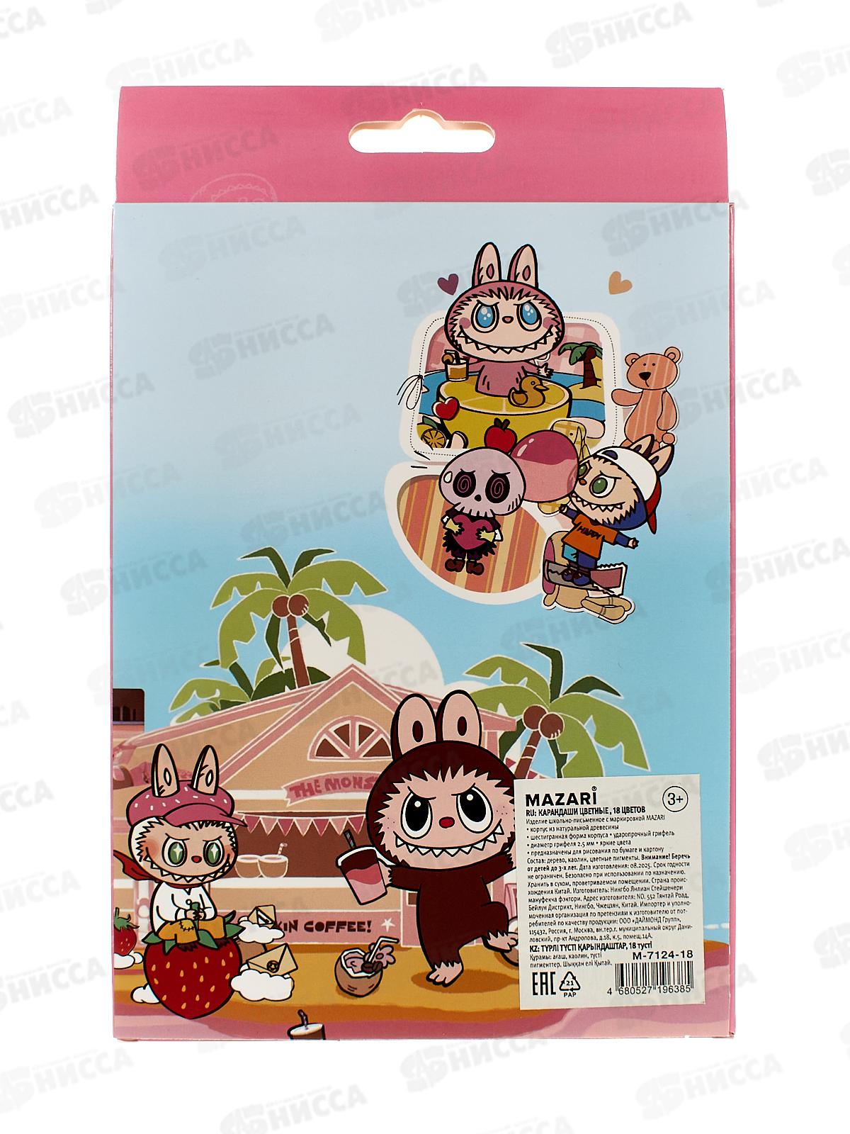 Карандаши 18цв MAZARI Зубастик. дер., гриф.2.5мм, к/у, M-7124-18 *9/180