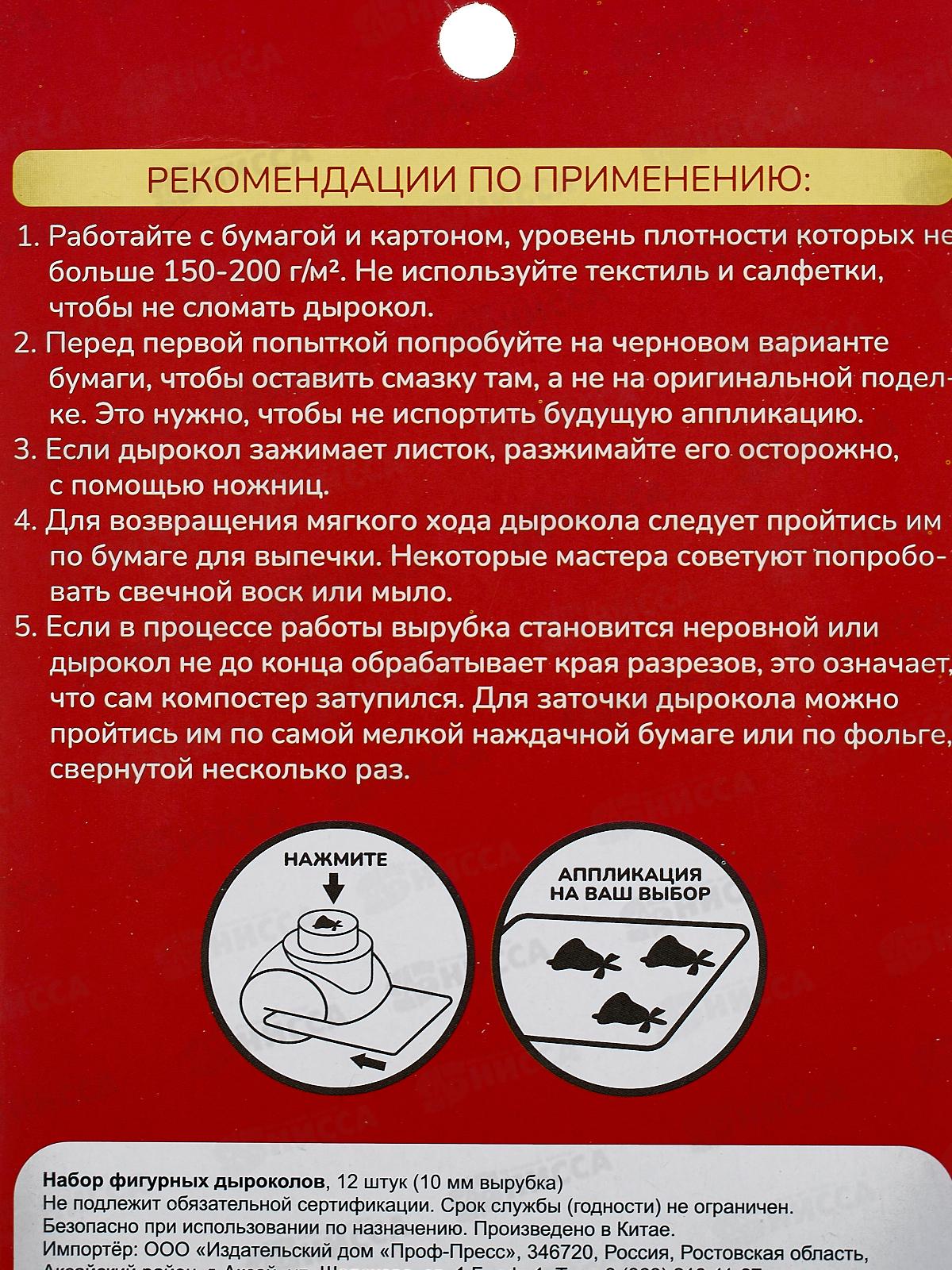 Набор фигурных дыроколов ПП, 12шт (10мм вырубка), ДР-1205
