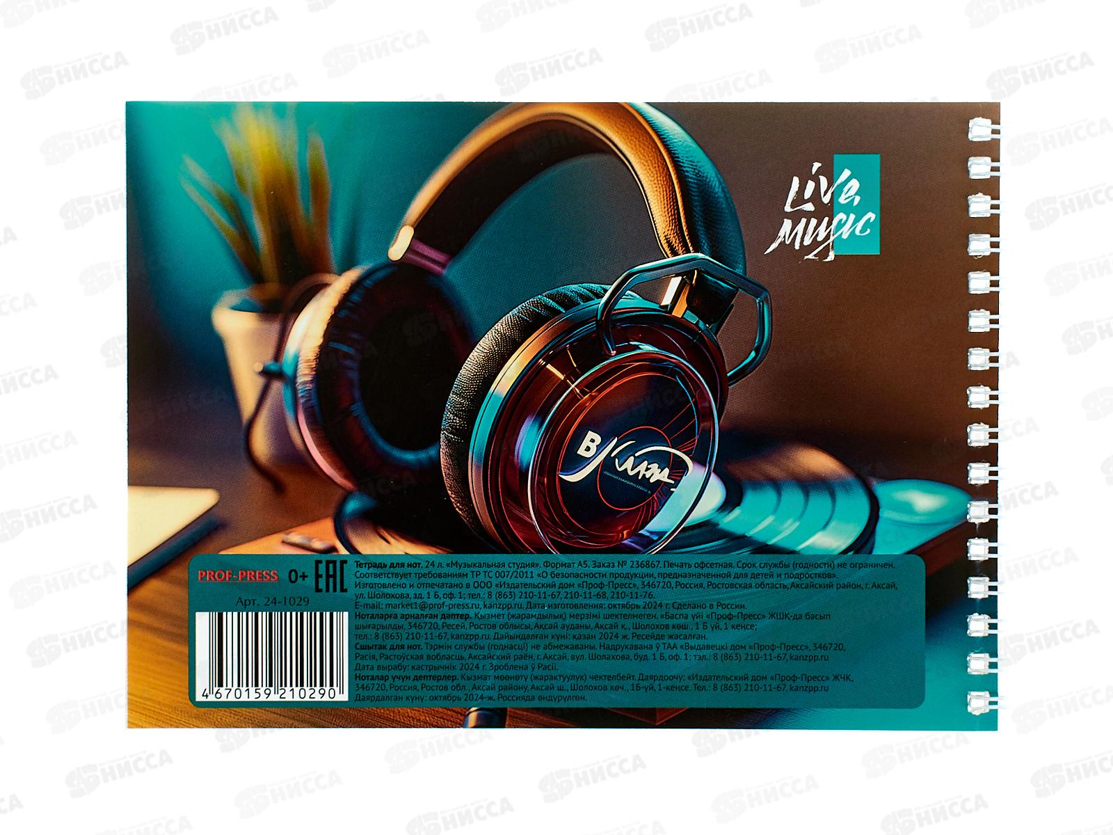 Тетрадь нотн. 24л ПП А5 Музыкальная студия, гребень, 24-1029