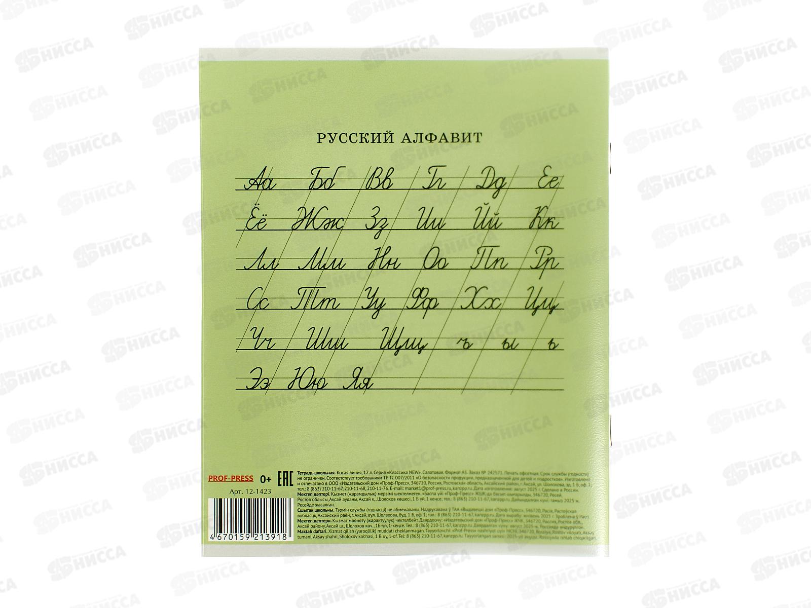 Тетрадь 12л косая линия ПП Классика NEW Салатовая, 12-1423 *10/240
