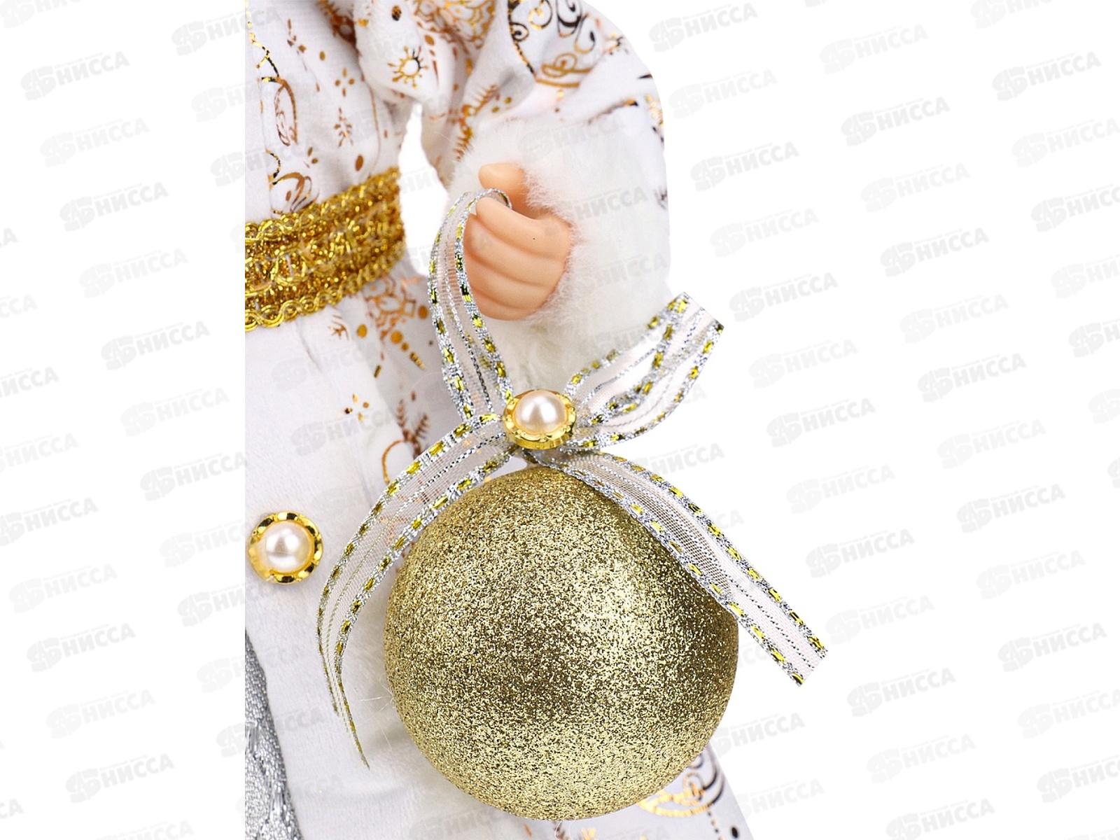 Дед Мороз в бело-золотой шубе, с мелодией, 40см Т-6015