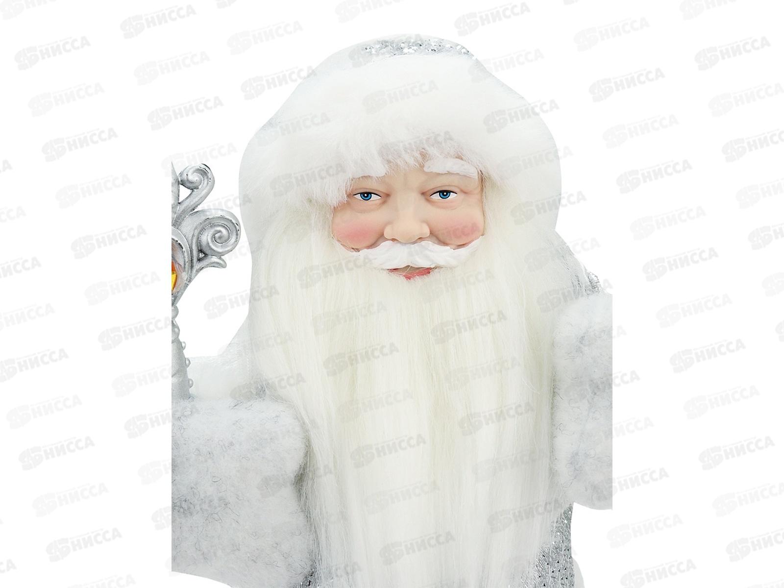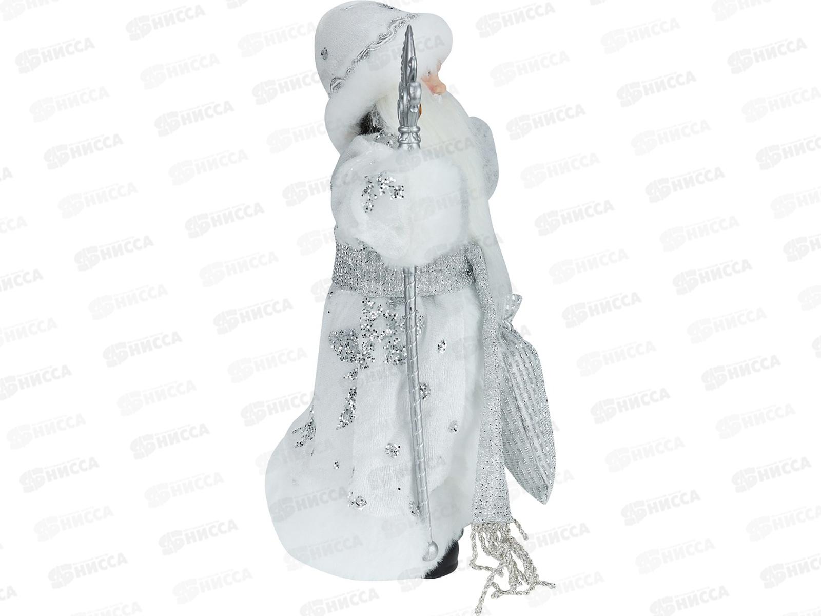 Дед Мороз в бело-серебристой шубе с посохом, 30см Т-6345