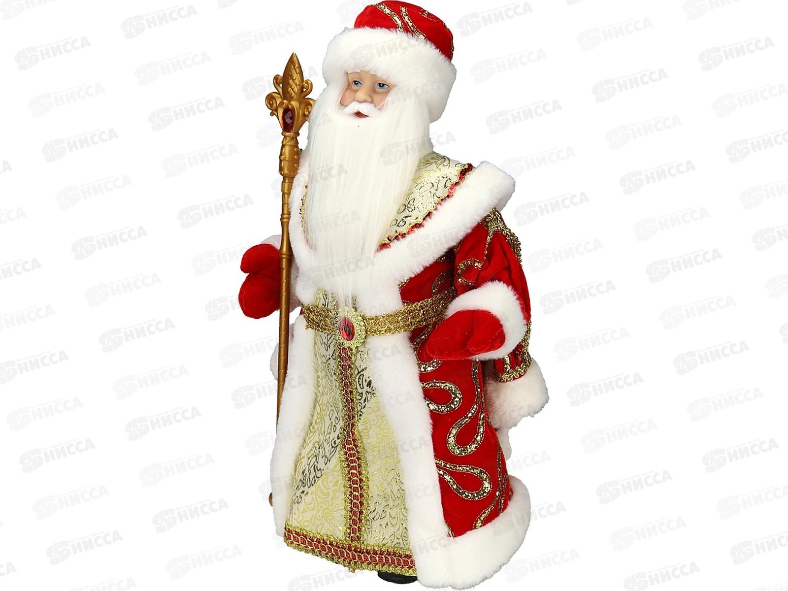 Дед Мороз в красной шубе с пайетками и белым мехом, 40см, Т-6584