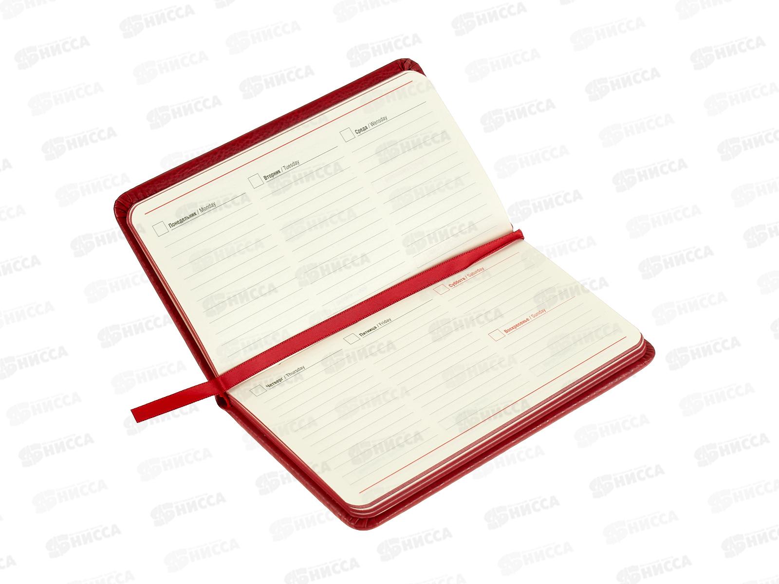 Еженедельник Qredo "Dublin" А6, 64л, недатир.,кожзам, красный, 15-6938