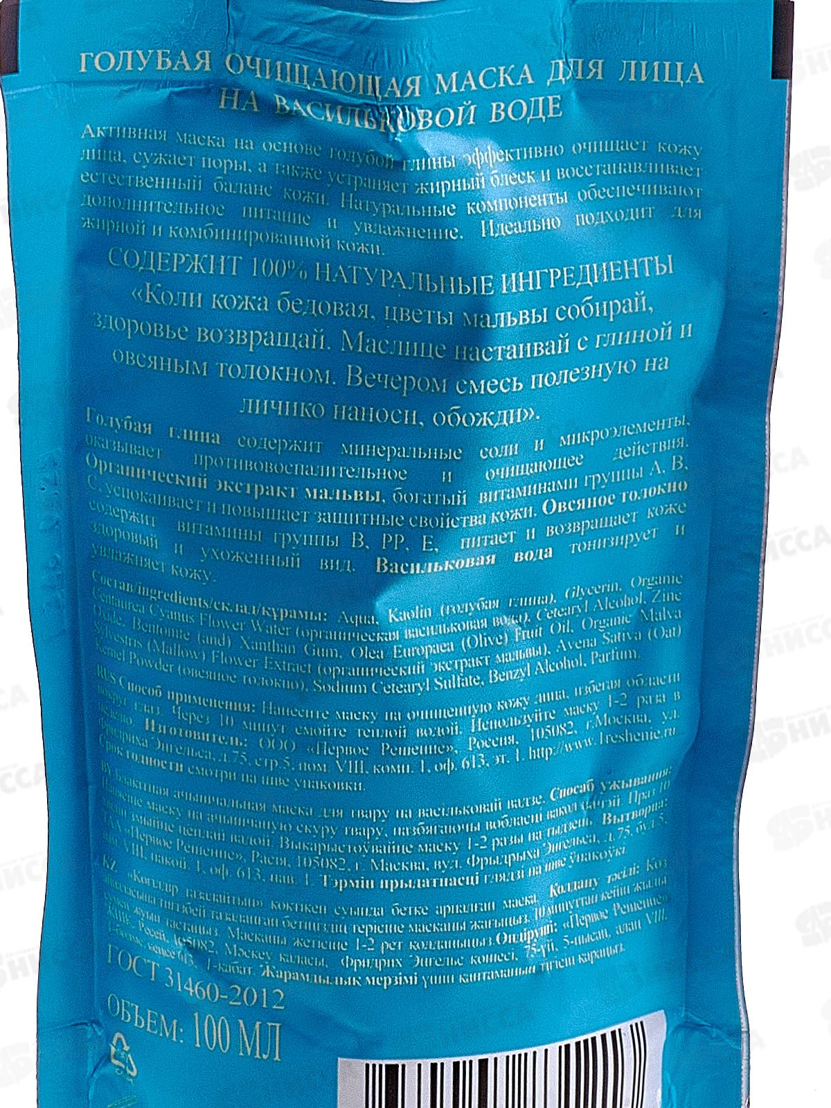 Активные компоненты: голубая глина, экстракт мальвы, овсяное толокно, васильковая вода