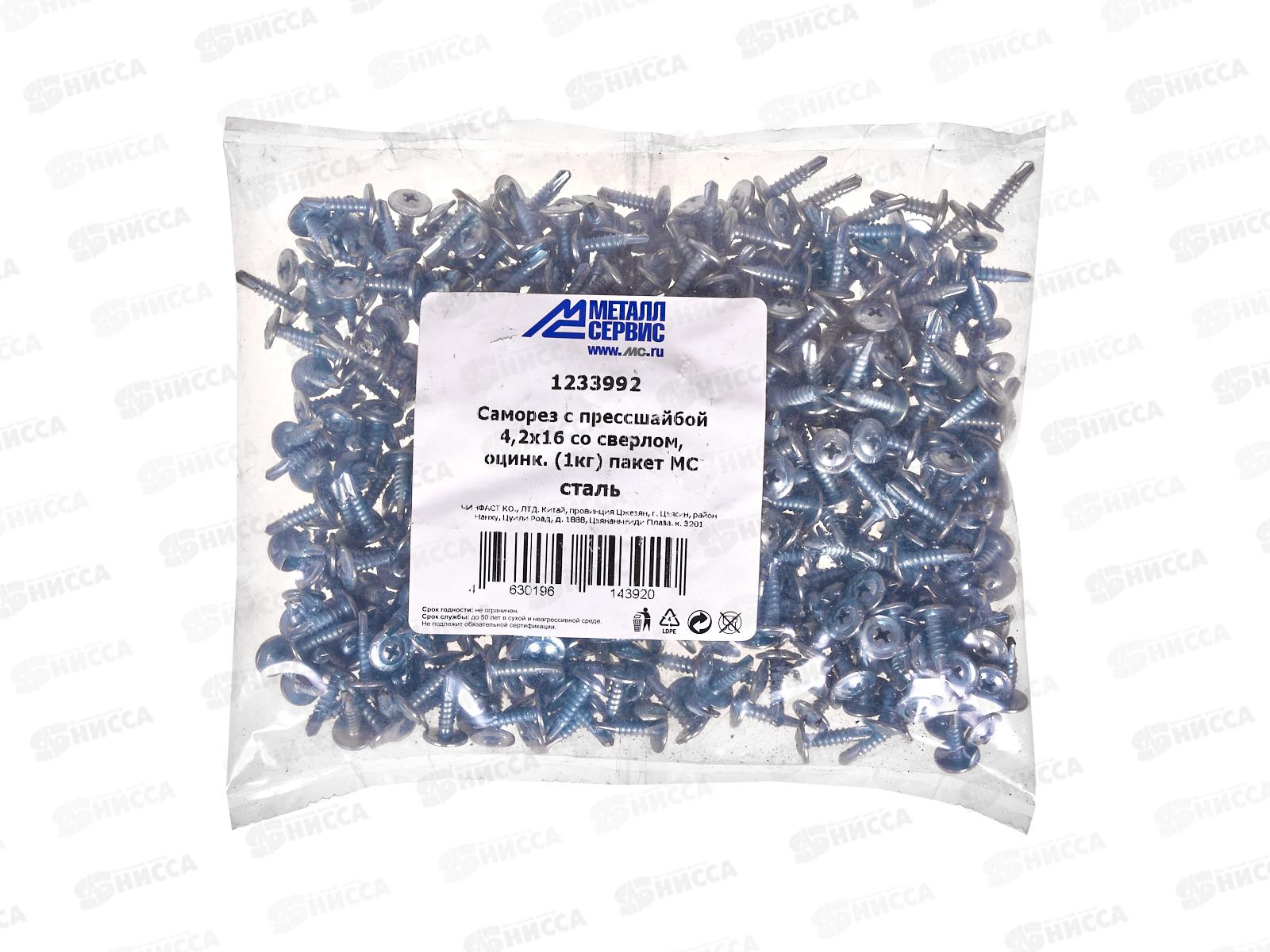 Саморез с прессшайбой 4.2*16 (1кг) со сверлом, пакет *10