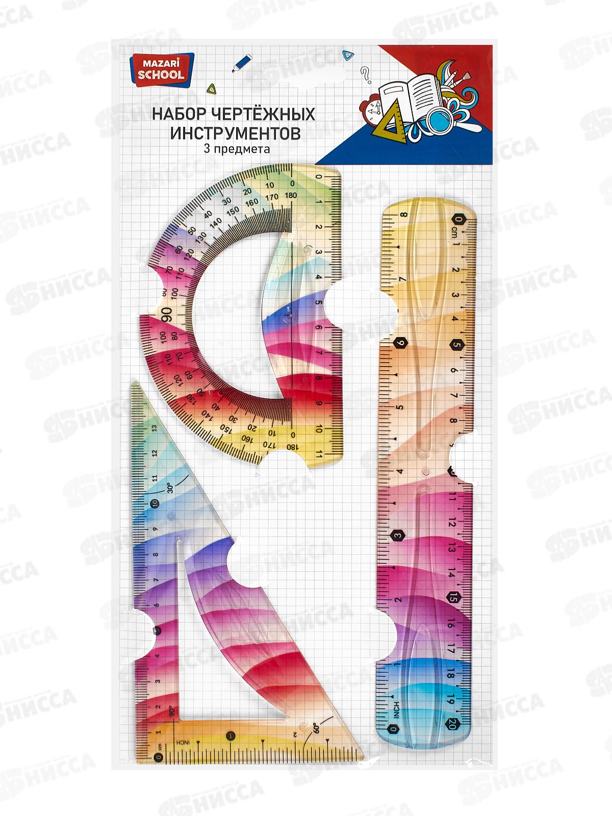 Набор черт. MAZARI 3пр. (лин,угол,тран.), гибкий, асс., M-9774 *36/108
