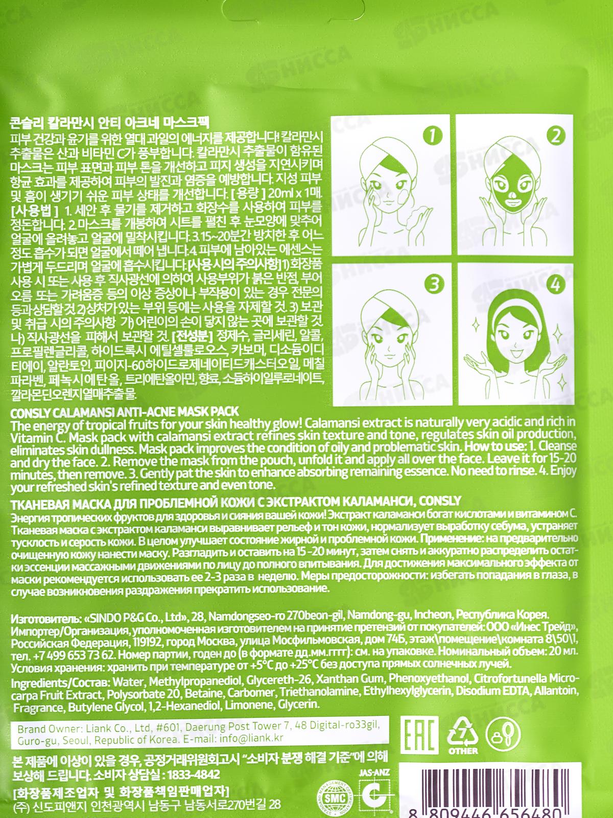 Consly Маска тканевая для проблемной кожи с экстракт каламанси 20мл
