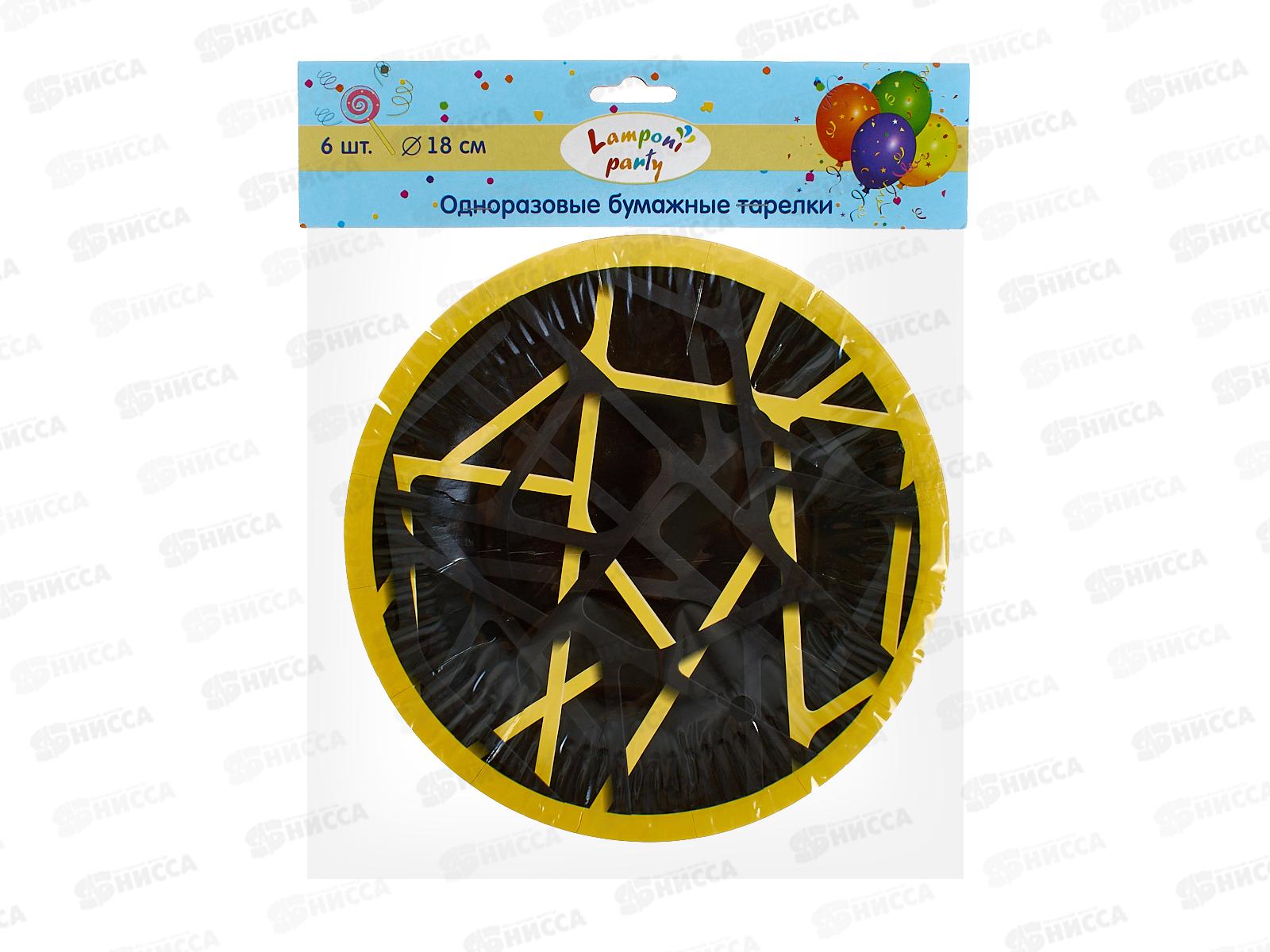 Тарелка бумажная Акад d-18см 6шт черная с желтым,печатью MNZP-UA12-PLT18-H6