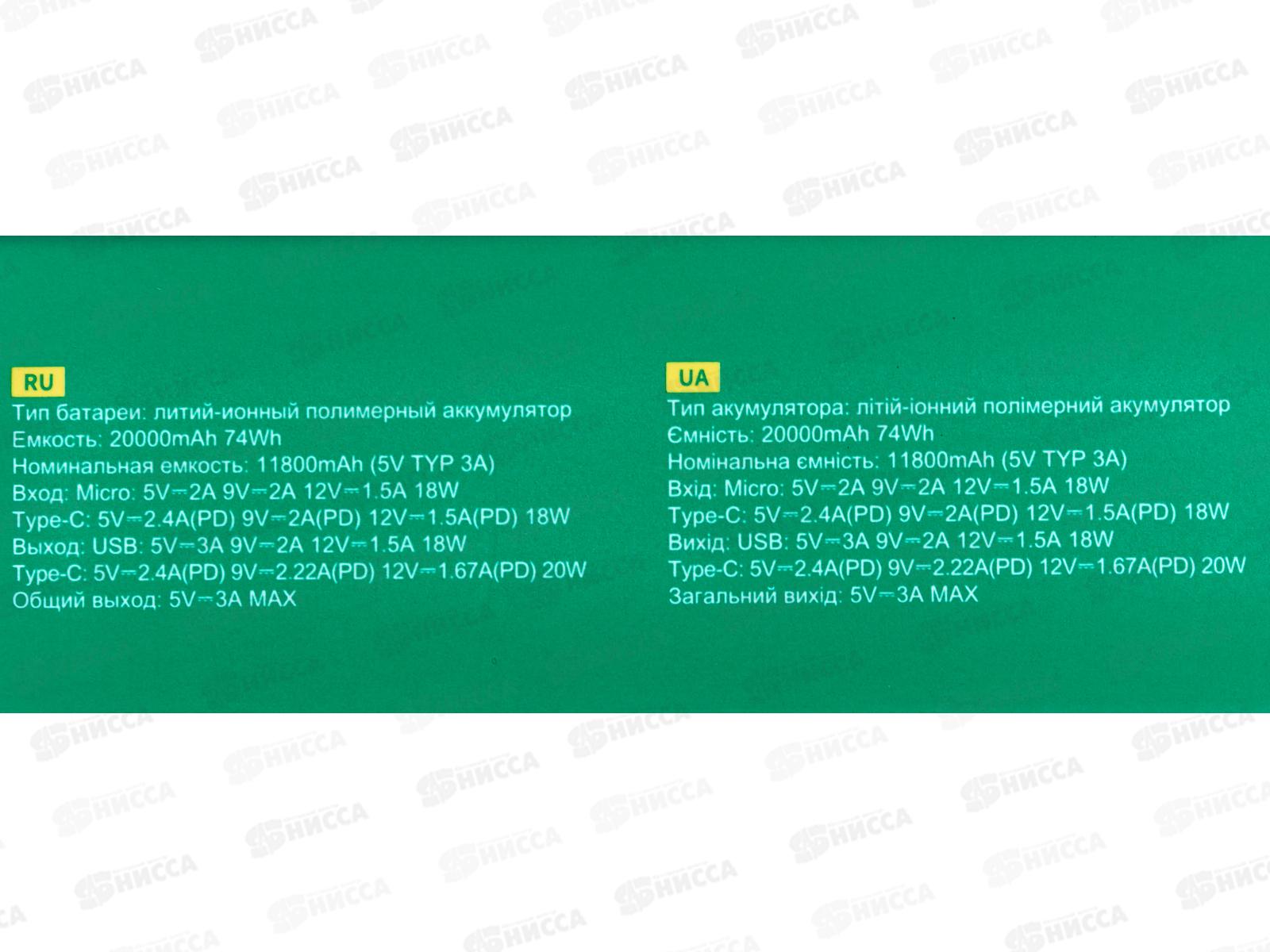 Зарядное устройство (Пауэрбанк) 1USB 3.0A PD 20W 20000mAh б/з J102A Whit