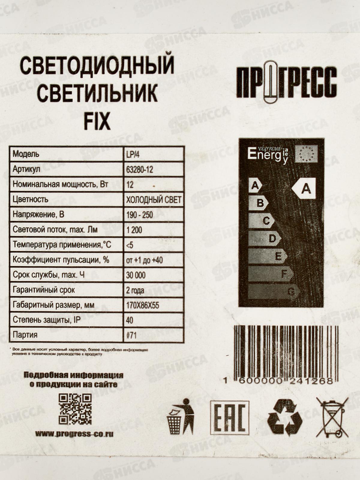 Светильник светодиодный ПРОГРЕСС FIX 12Вт овальный, 6500К *100