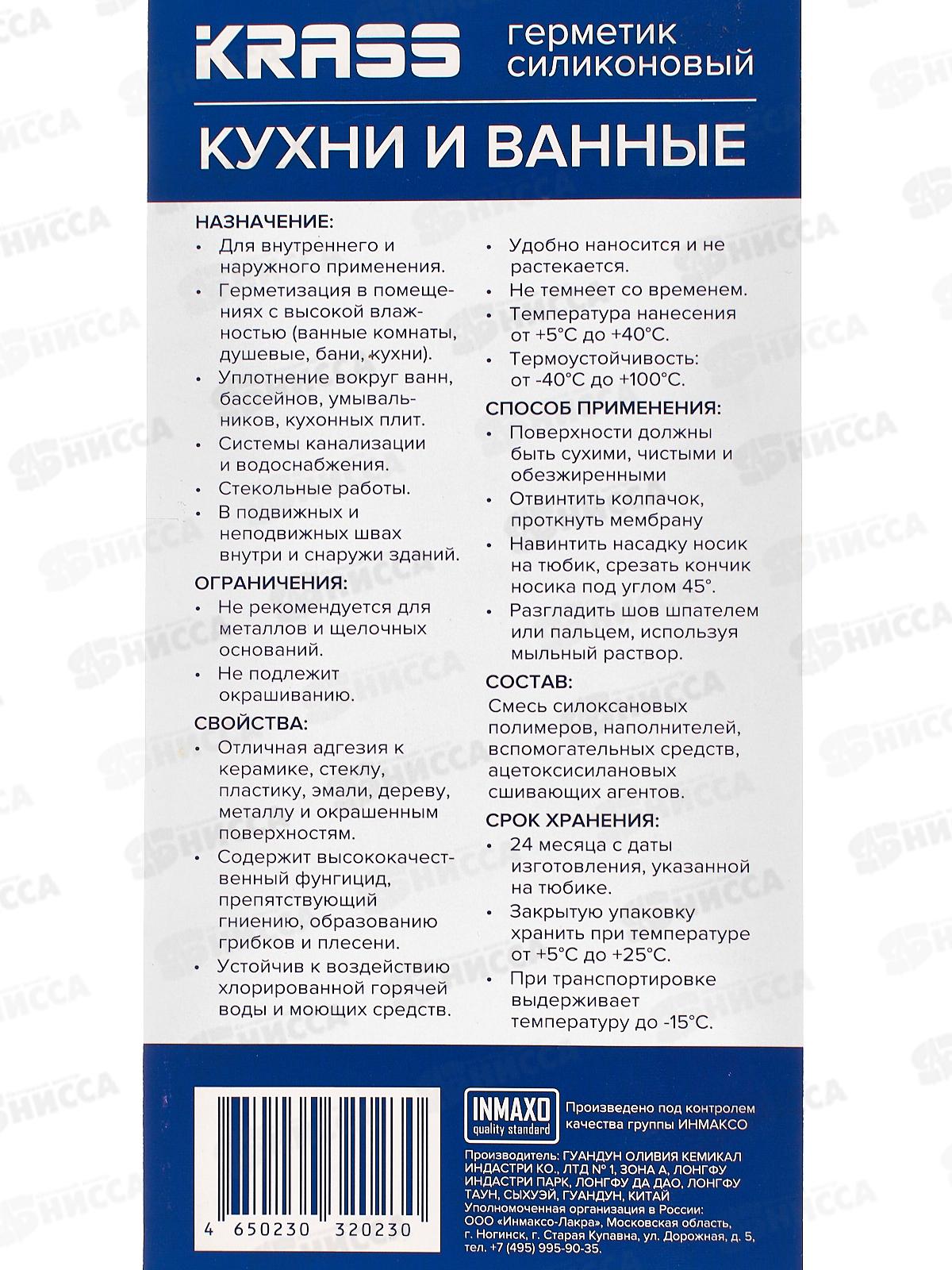 Герметик KRASS 80мл силикон д/кухни и ванны Бесцветный, 9593351