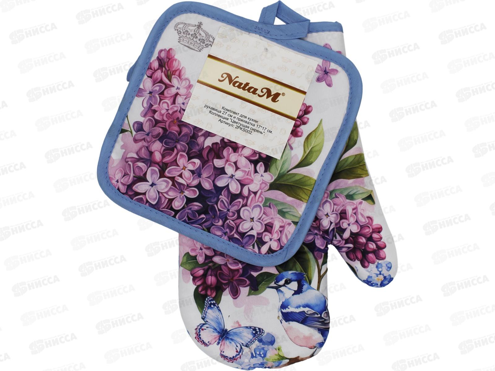 Набор для кухни: рукавица 27см и прихватка 17х17см "Цветущая сирень" полиэстер, 2РКS002 АТМ