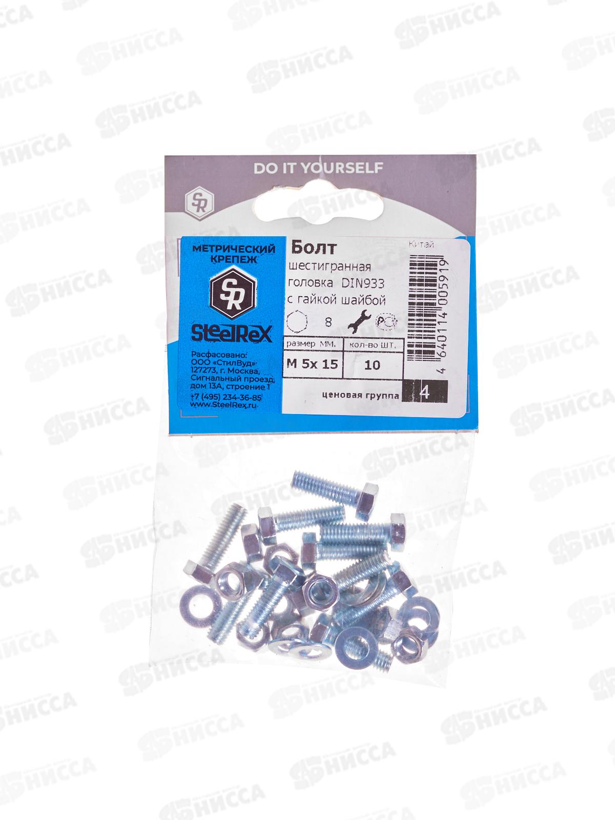 Болт SR (DIN933) М 5*15 с гайкой и шайбой 10шт