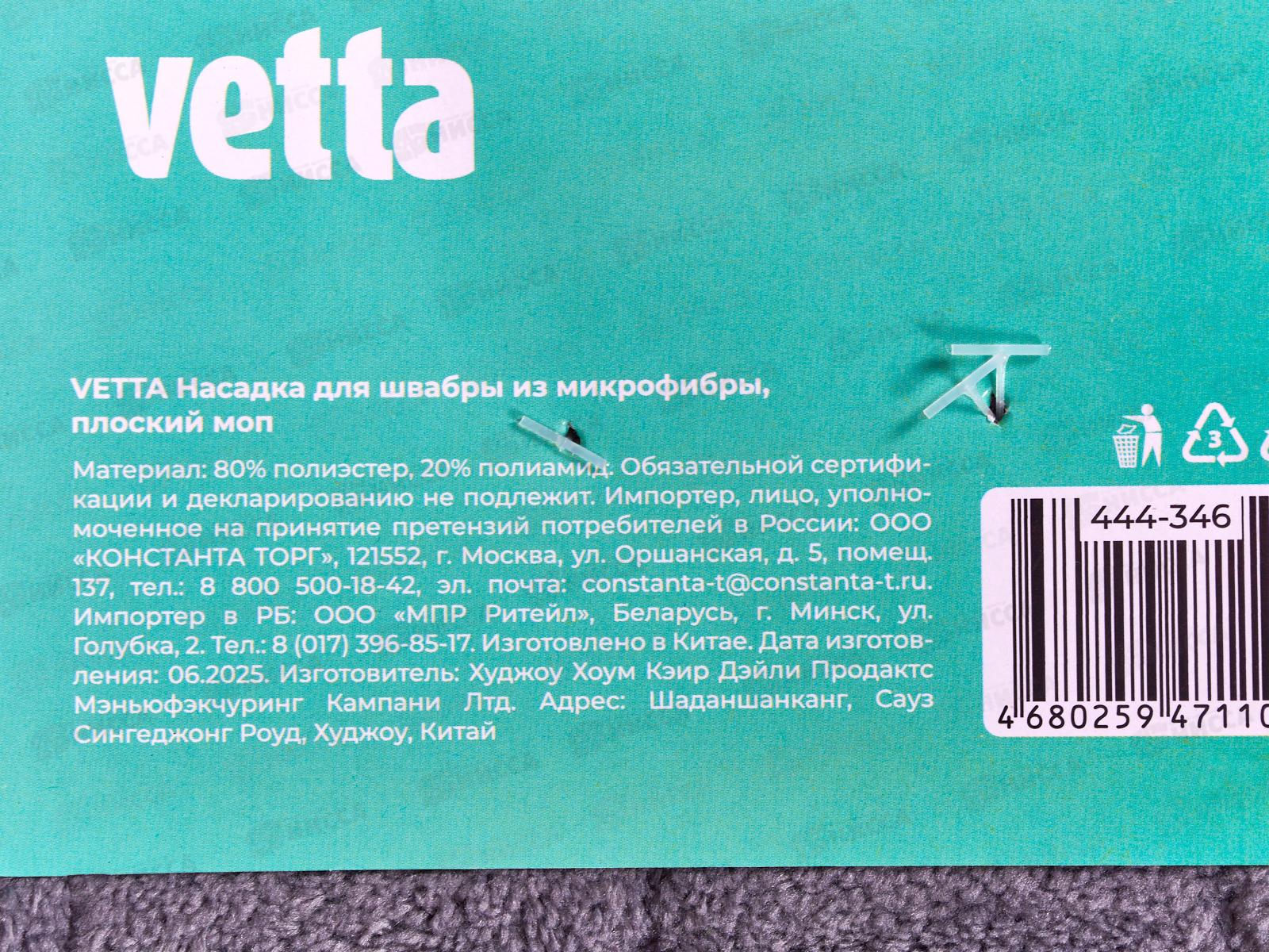 Насадка для швабры VETTA из микрофибры, плоский моп 444-346 г