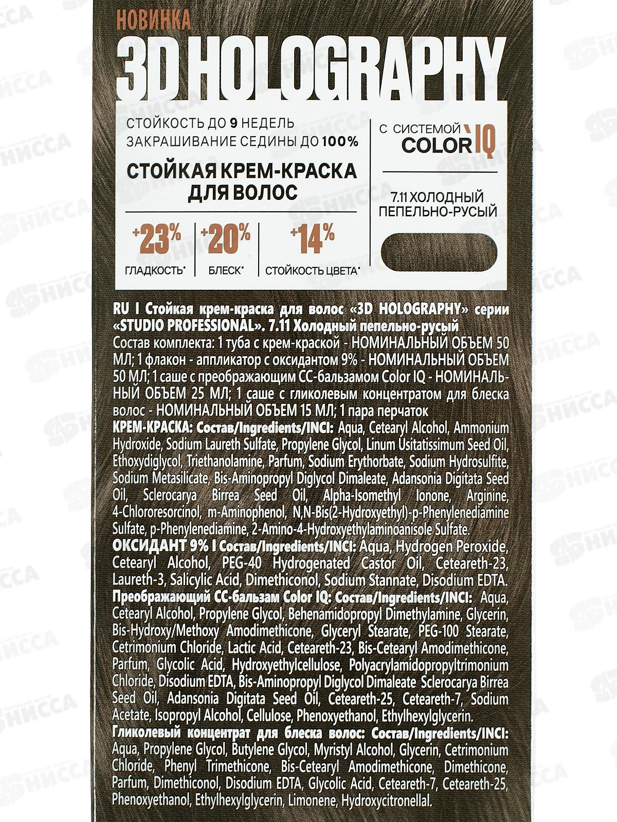 STUDIO 3D голографик к/краска 7,11 Холодный пепельно-русый *6