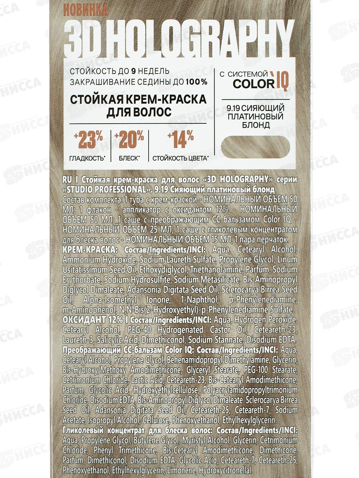 STUDIO 3D голографик к/краска 9,19 Сияющий платиновый блонд *6