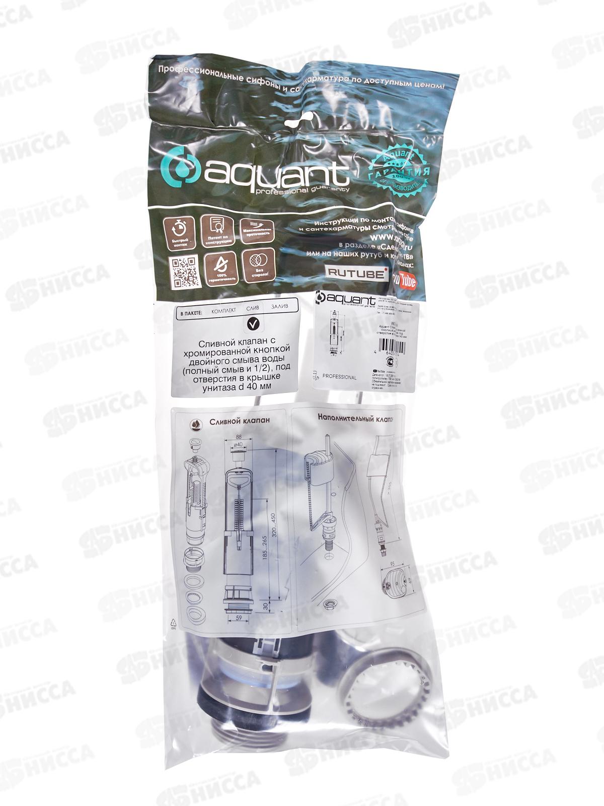 Спускной клапан Aquant с кнопкой двойного слива позволяет регулировать объем воды при полном и половинном сливе. Хромированная нажимная кнопка фиксируется на керамической крышке бачка с возможностью смещения до 30 мм по каждой оси. Модель предназначена для бачков с монтажным отверстием диаметром около 40 мм. Байонетная система конструкции обеспечивает простоту обслуживания, бесшумную работу и высокую скорость слива. Основной рабочий элемент — донный клапан с уплотнительным кольцом из высококачественного силикона, который сохраняет эластичность и не деформируется со временем, гарантируя надежную работу в различных условиях эксплуатации.