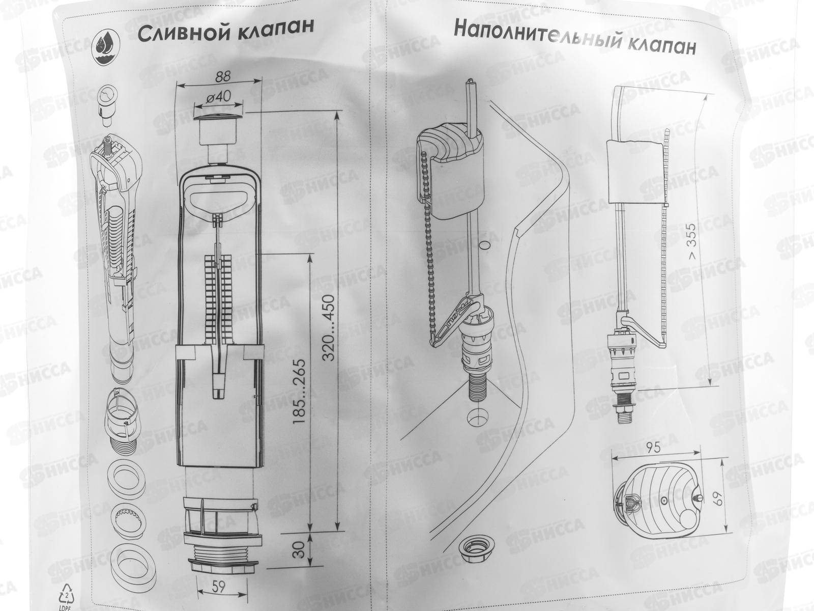 Сливной клапан с хромированной кнопкой двойного смыва, под отверстия в крышке унитаза d40мм, WC7062 *25