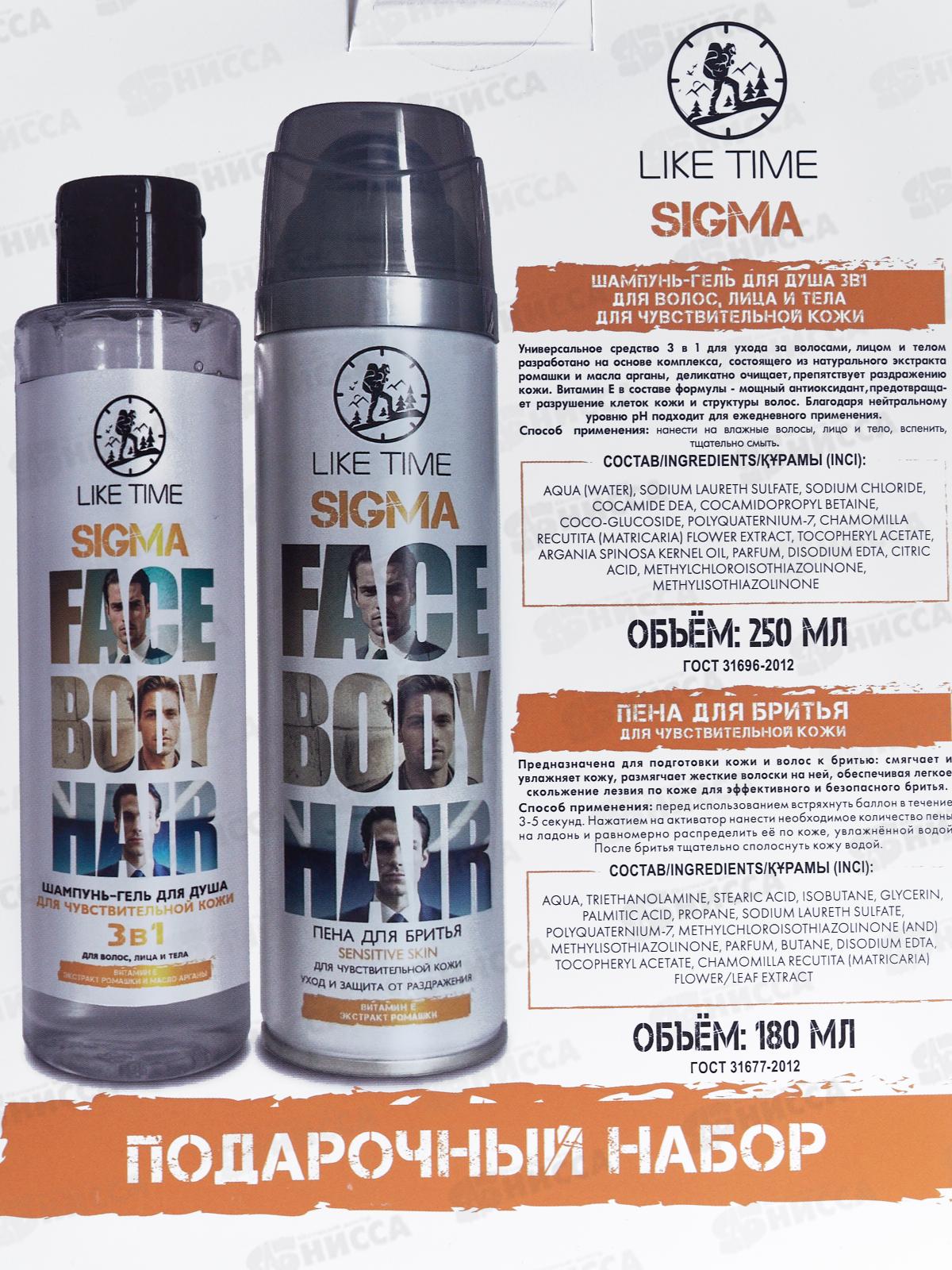 Like Time подарочный набор SIGMA (шампунь-гель 3в1 250мл+пена для бритья 180мл) *10