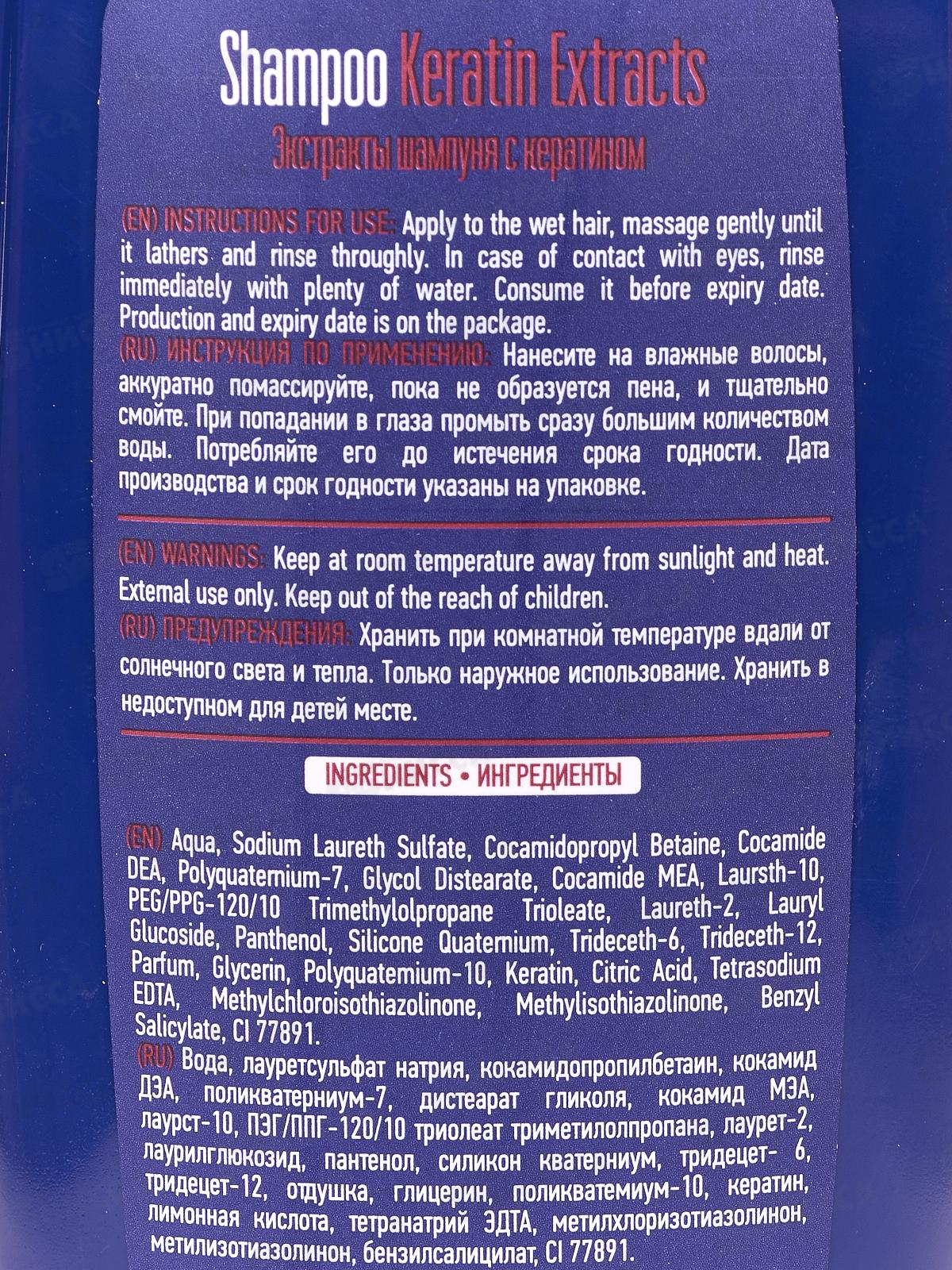 Состав: вода, лауретсульфат натрия, кокамидопропилбетаин, кокамид ДЭА, поликватерниум-7, дистеарат гликоля, кокамид МЭА, лаурст-10, ПЭГ/ППГ-120/10 триолеат триметилолпропана, лаурет-2, лаурилглюкозид, пантенол, силикон кватерниум, тридецет- 6, тридецет-12, отдушка, глицерин, поликватемиум-10, кератин, лимонная кислота, тетранатрий ЭДТА, метилхлоризотиазолинон, метилизотиазолинон, бензилсалицилат, CI 77891.