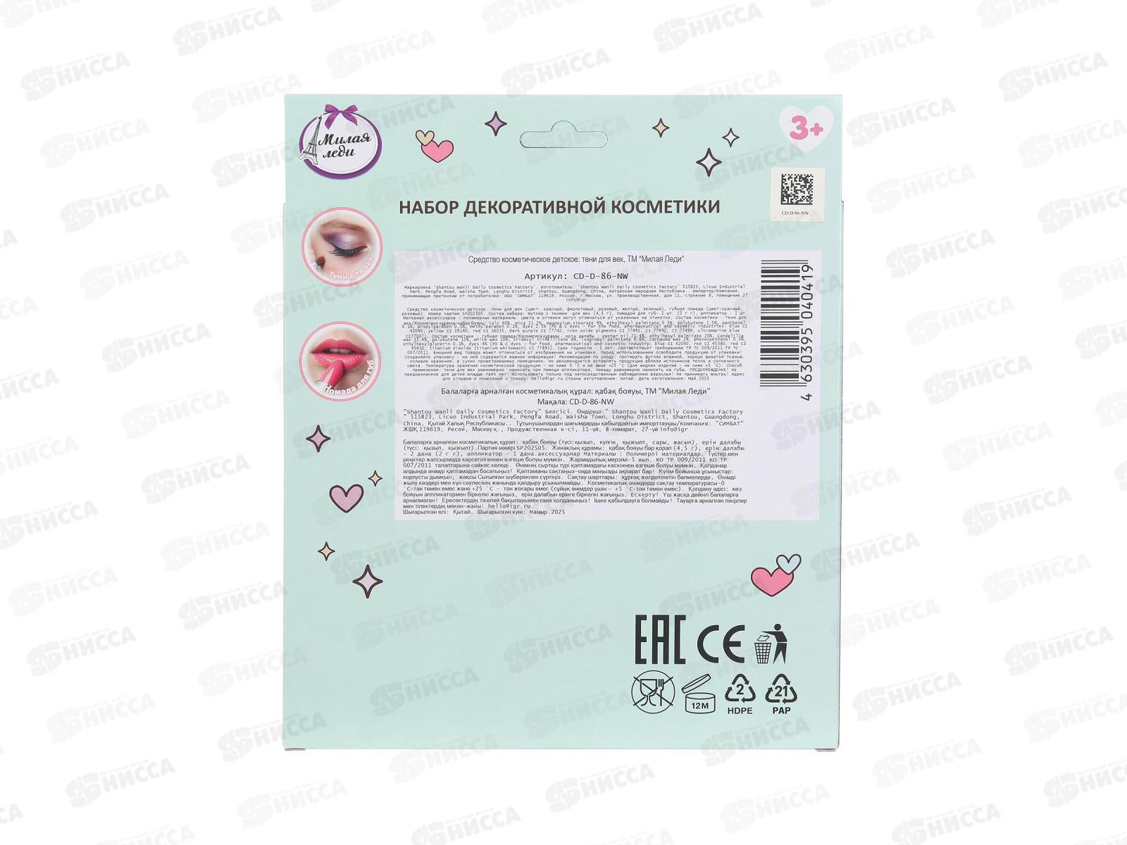 Косметика для девочек "МИЛАЯ ЛЕДИ" CD-D-86-NW тени, помада