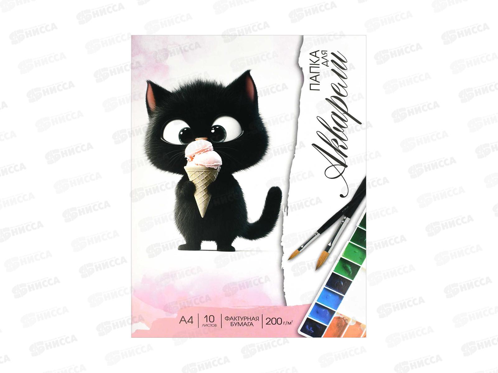 Папка д/акварели А4 10л ФЕН Котенок с мороженым, 200г/м2 69936 *30