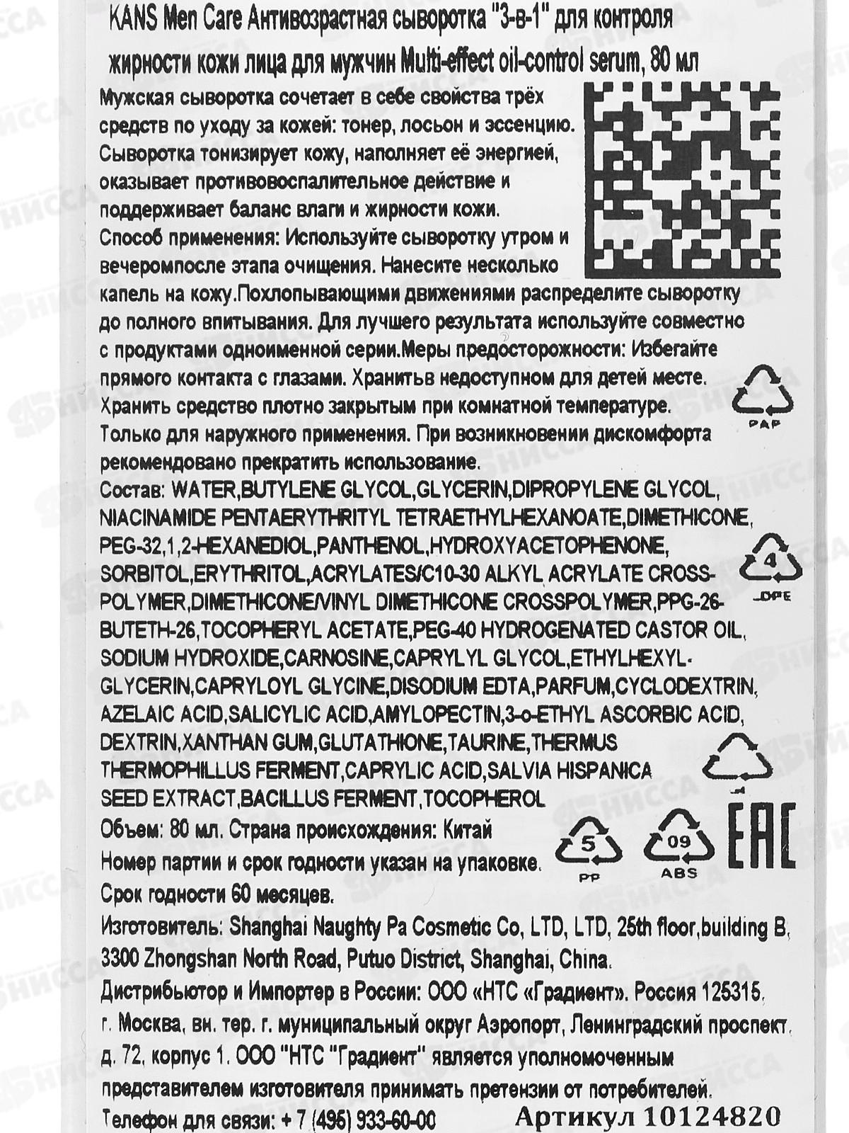 KANS Men Care Антивозрастная сыворотка 3в1 для муж M.o.s. 80мл