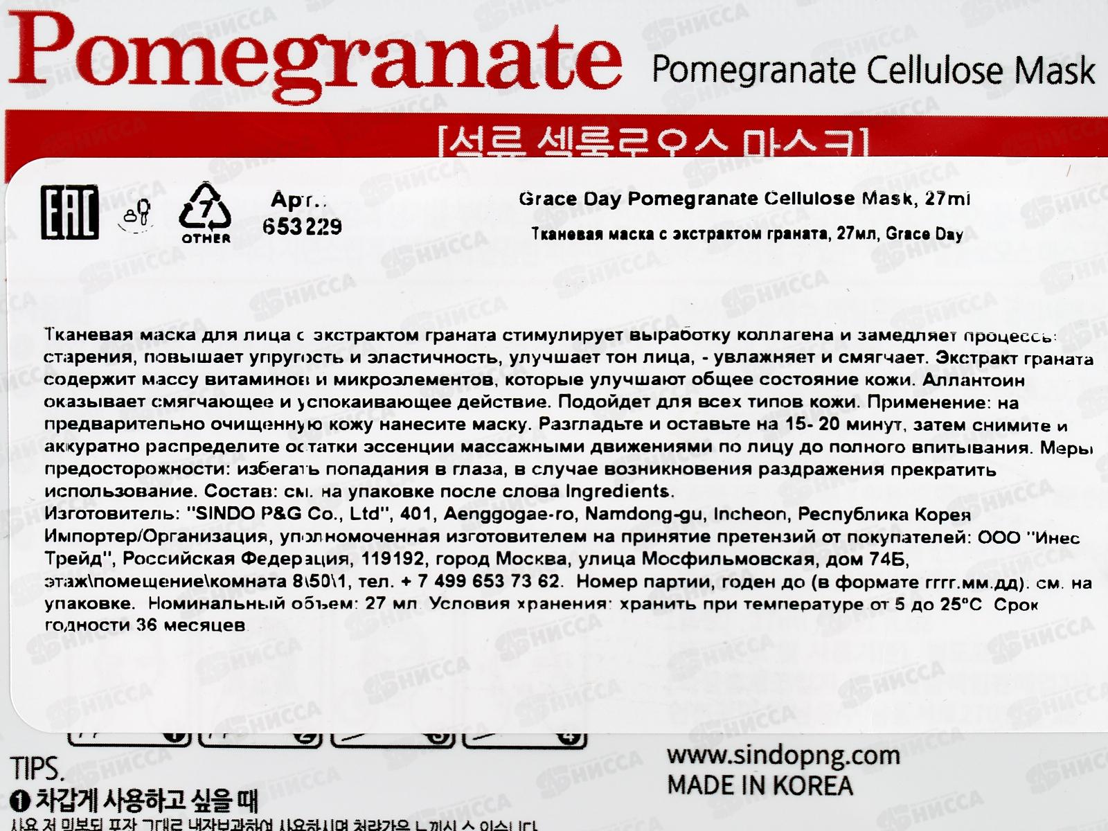 Grace Day Маска тканевая с экстрактом граната 27мл 653229