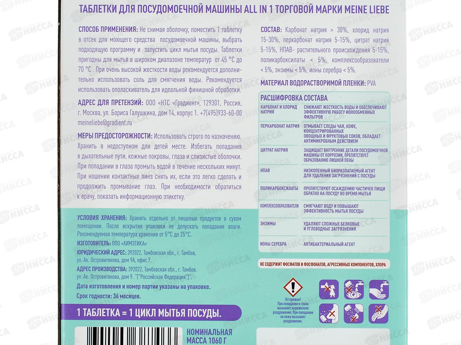 MEINE LIEBE Таблетка для ПММ AII in 1, 50шт+3шт *16