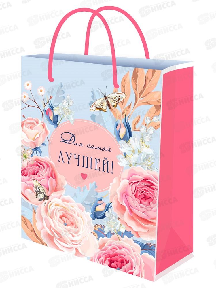 Пакет подарочный MI 26,4х32,7х8см (L) Бабочки на цветах ППК-7863 *12